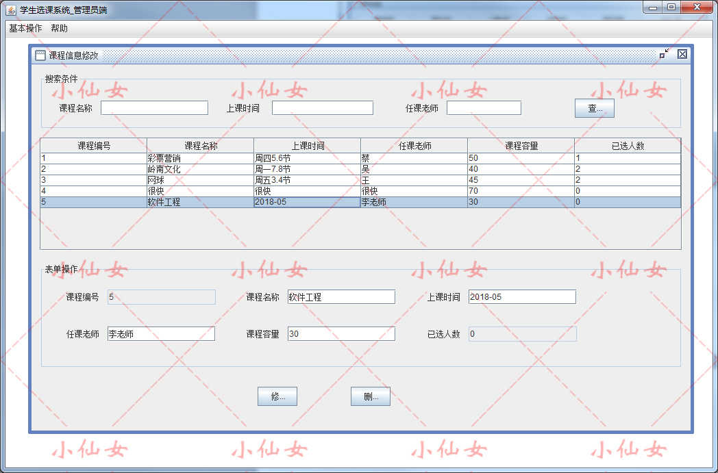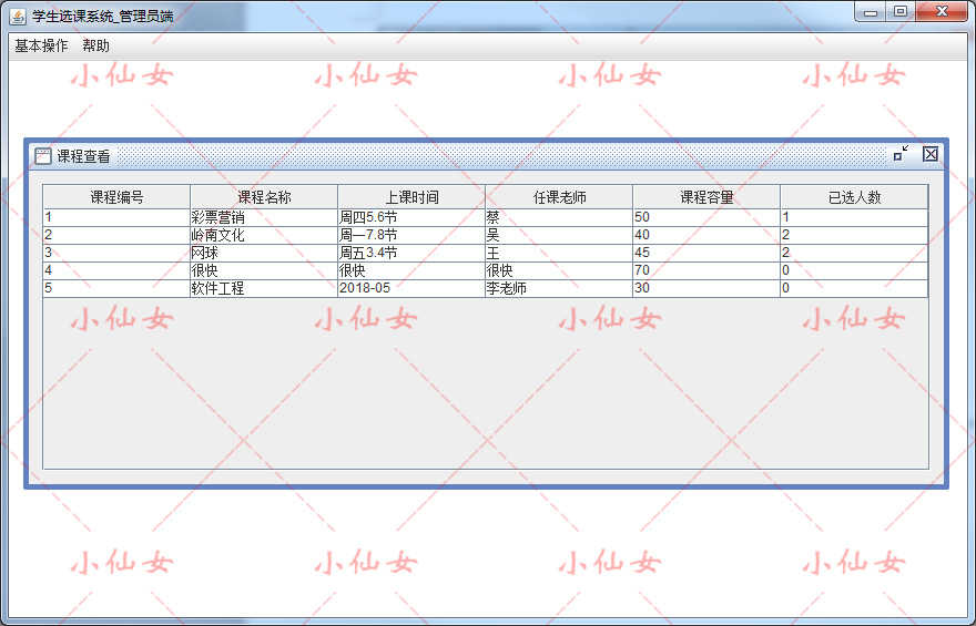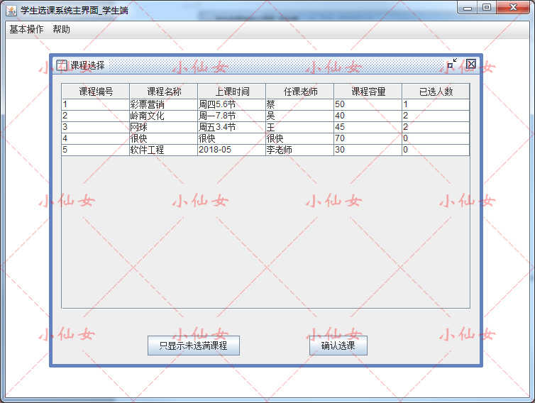 java学生选课管理系统源代码 swing窗体学校课程课表项目设计源码
