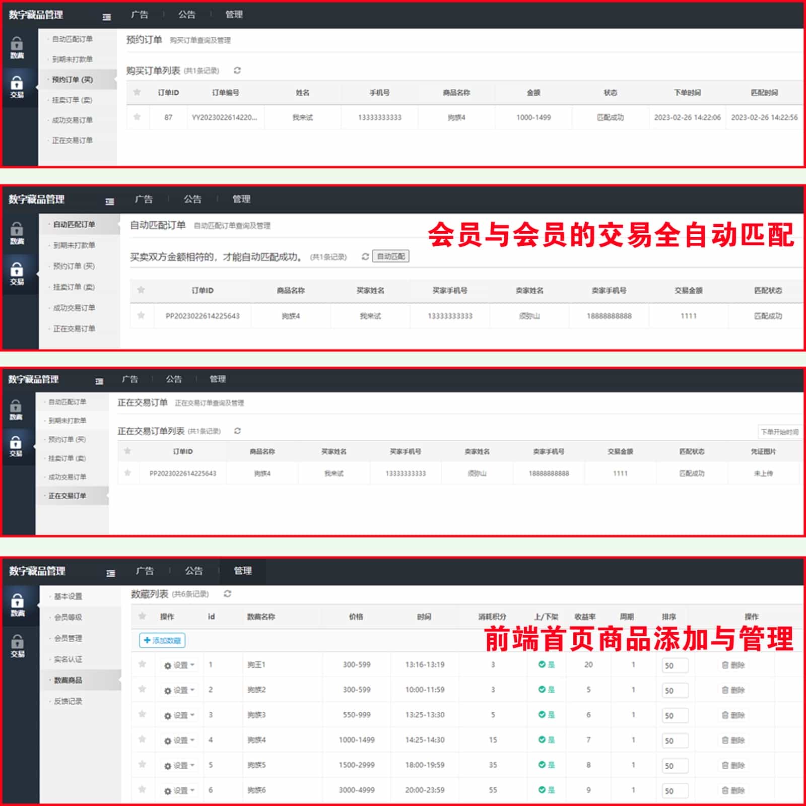 会员与会员交易全自动匹配功能,后台是全中文的。