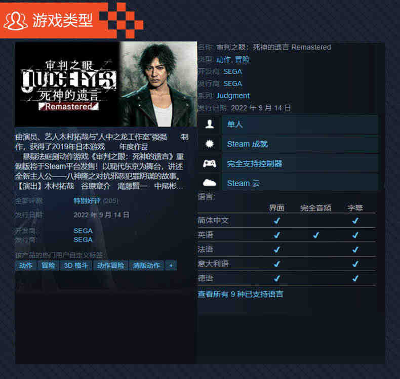 欢迎来到我的商品介绍。今天我想向您介绍的是PC中文正版Steam《审判之眼:死神的遗言 Remastered》。这是一款悬疑推理逻辑剧情游戏,玩家需要扮演一名律师,在案件中调查证据、询问证人并最终找到真相。