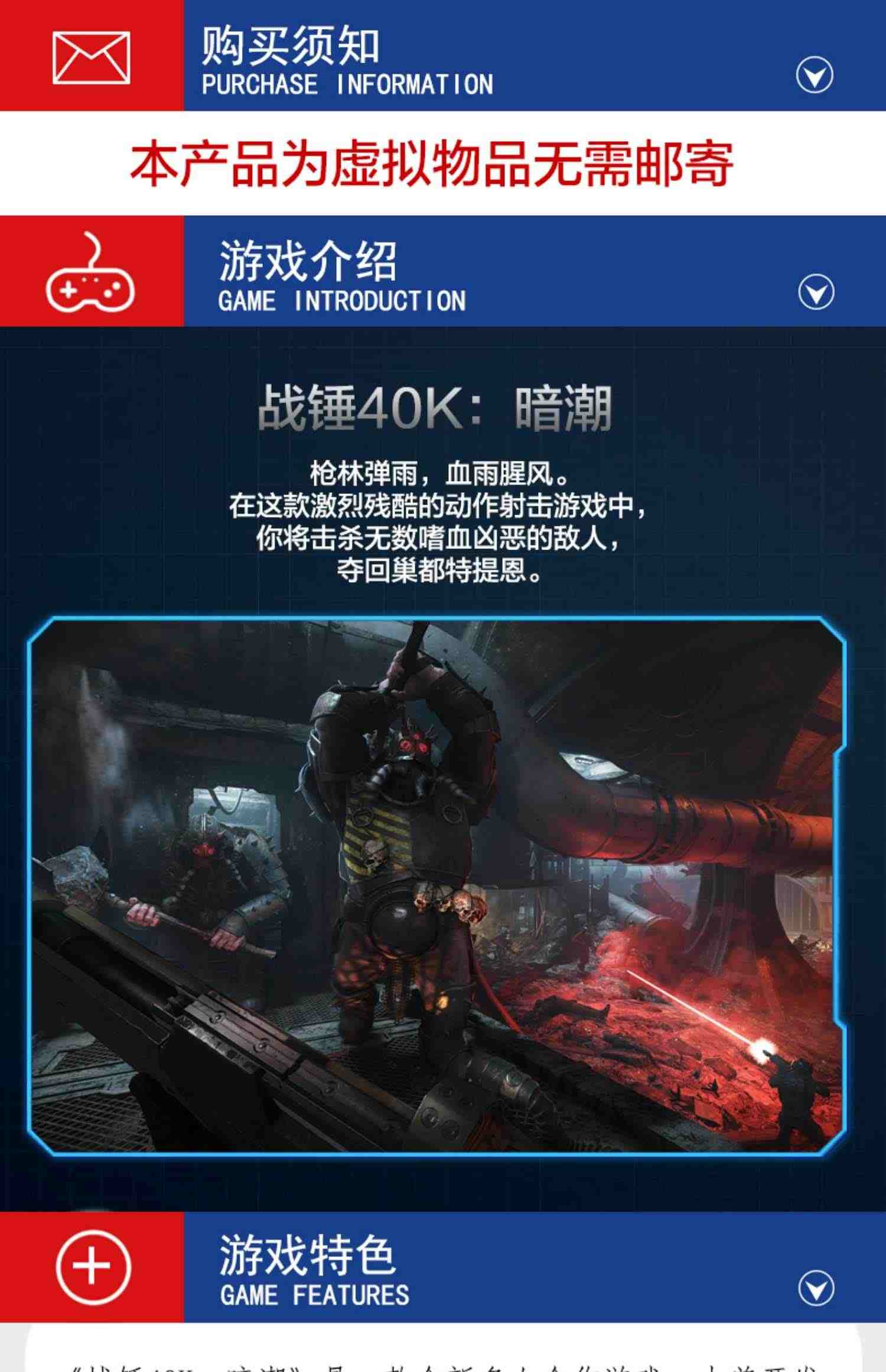 《战锤40K暗潮 帝国版》的中文正版CDKey支持国区激活,玩家可以在Steam平台上进行下载和游戏。如果您喜欢动作射击类游戏,并且想要挑战不同的战斗场景和敌人,那么这款游戏绝对值得一试。