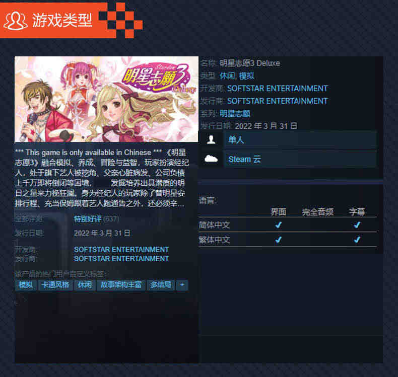 【豪华版】 明星志愿3 豪华版 国区激活码 cdk秒发