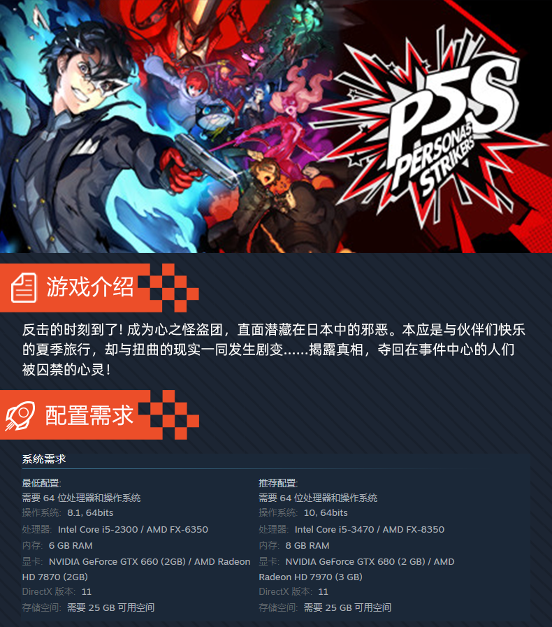 【标准版】女神异闻录5 乱战:魅影攻手 标准版 国区激活码(Steam419元版本)