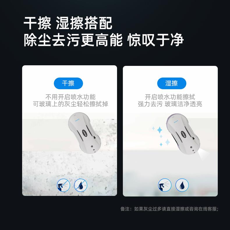 这款自动双向喷水擦窗机器人是一款家用清洁神器,拥有超薄智能全自动清洁功能,让您省去繁琐的擦窗时间和精力。它能够自动感应窗户大小,并且可在不同角度进行清洁,使得您的窗户在短时间内变得干净明亮。它还有双向喷水功能,能够更好地清洗窗户表面。这款机器人易于使用,只需要按下一个按钮,它就能开始工作。它还配备了安全绳,让您可以更加放心地使用。不仅如此,这款机器人还拥有智能识别障碍物功能,能够自动避免碰撞和坠落,确保您和家人的安全。让这款自动双向喷水擦窗机器人为您带来轻松、高效、安全的清洁体验!
