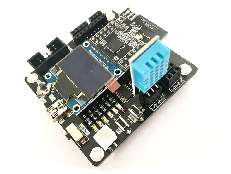 板载DS18B20温度传感器、DHT11温湿度传感器接口,实现温度、温湿度检测。