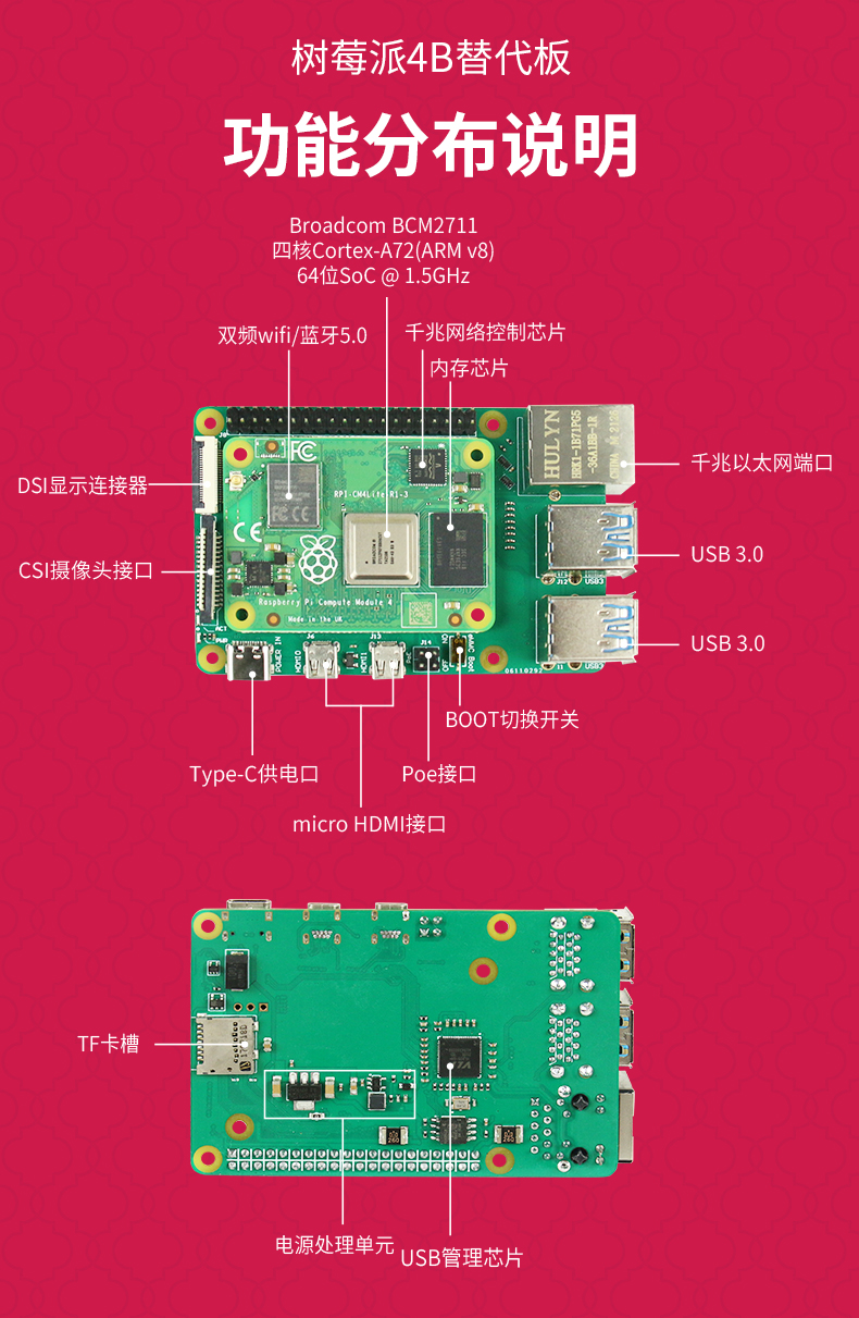 树莓派开发板CM4是一款强大的嵌入式计算机,适合各种各样的项目。它支持Linux操作系统和Python编程语言,可以用于开发各种应用程序,如物联网设备、媒体中心、智能家居等等。