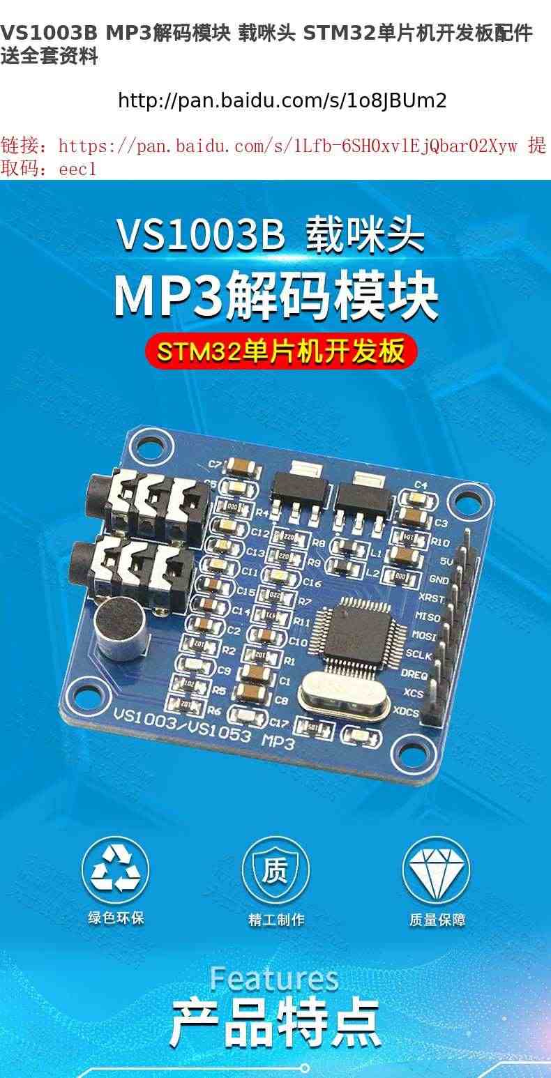 VS1003B MP3解码模块 载咪头 STM32单片机开发板