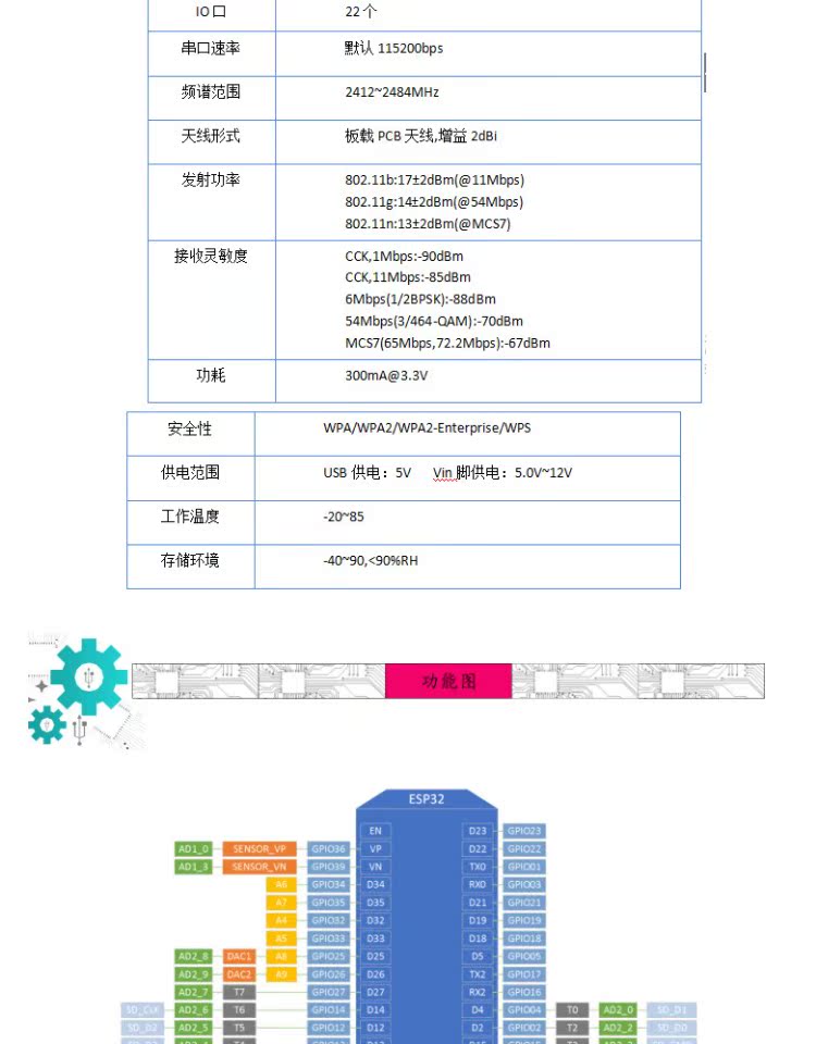 现密斯 ESP32开发板WIFI+蓝物联网智能家居ESP-WROOM-32 ESP-3 2S