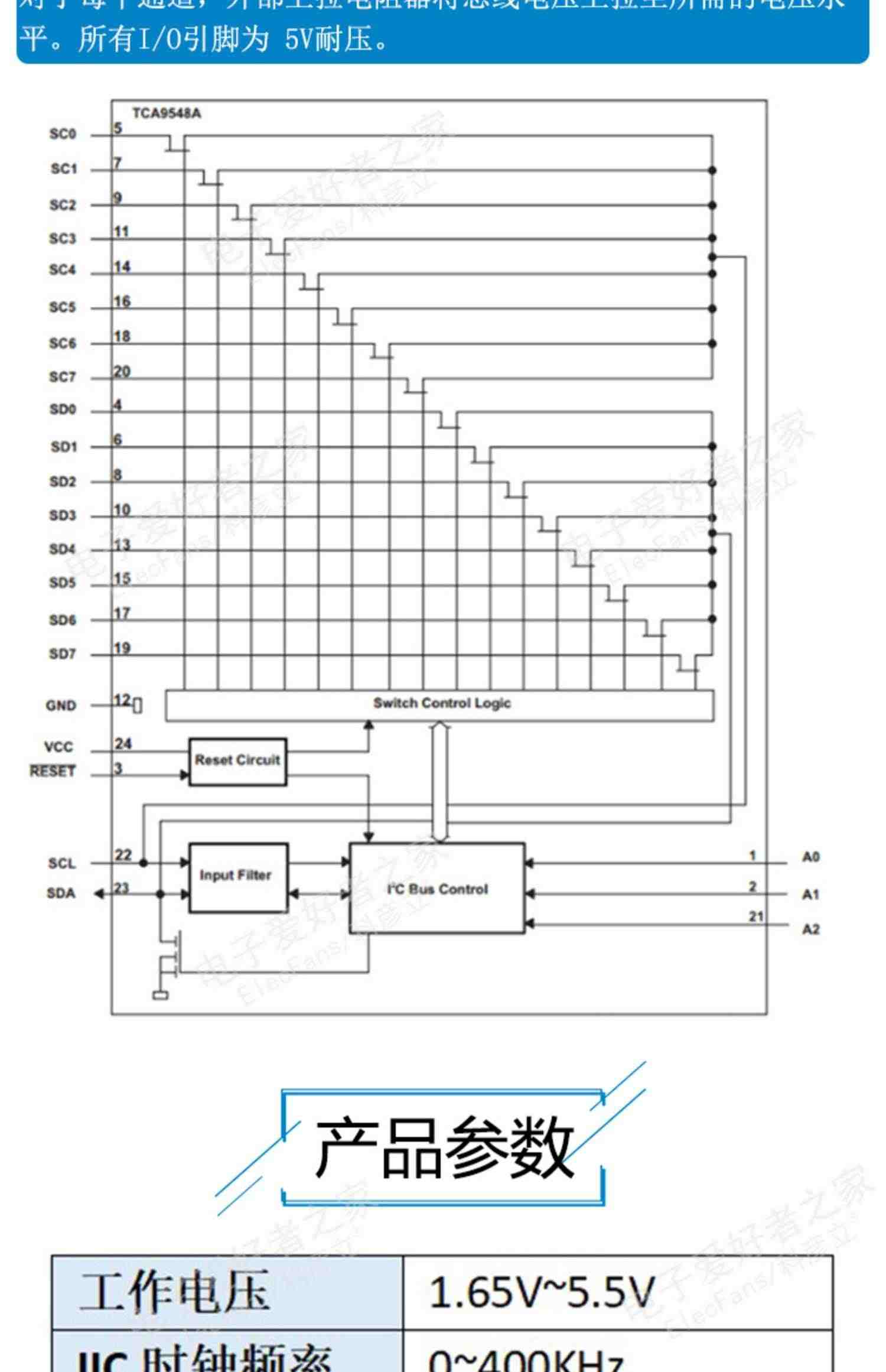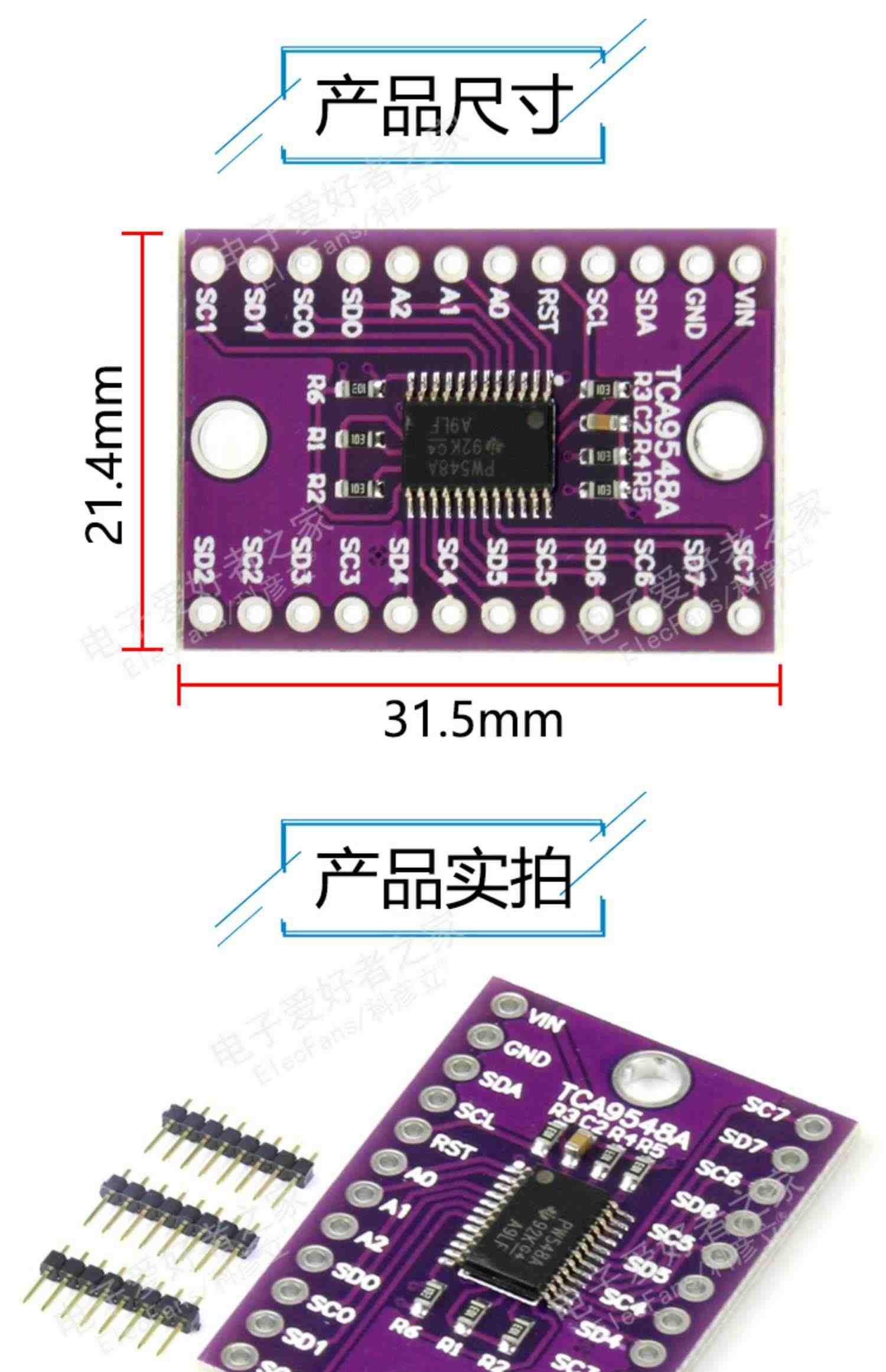TCA9548A模块 IIC多路扩展板 8路I2C通信开关开发板 带复位功能