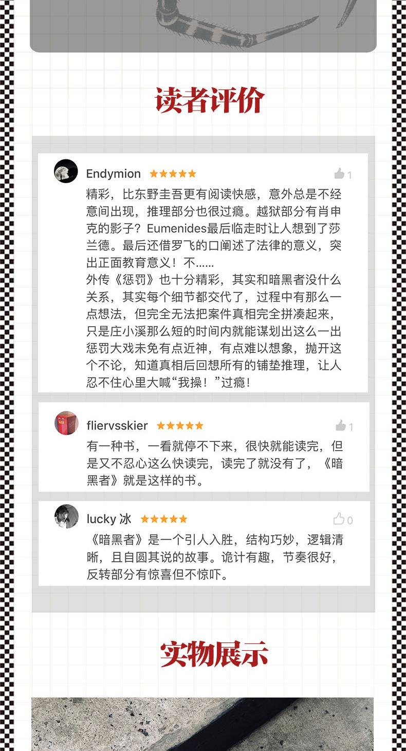 ◆《暗黑者》是一部构思精巧的悬疑作品,它对正义的边界进行了探索。