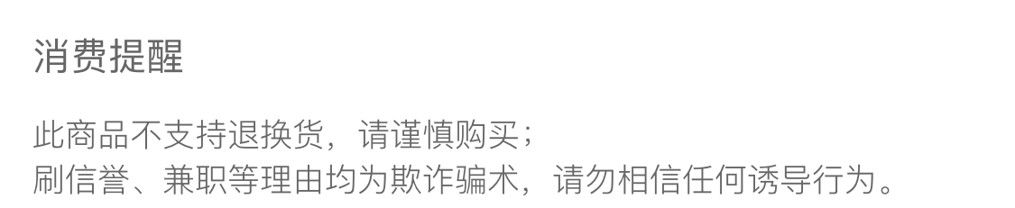 5、在有"正当退款原因和依据"的前提下,写有"一旦售出,概不支持退款"等类似的声明,视为无效声明;