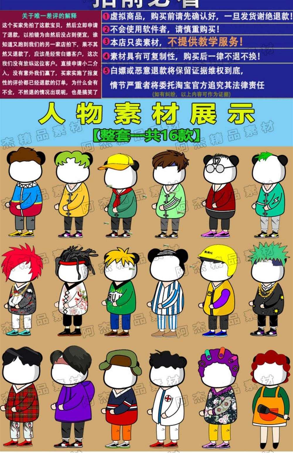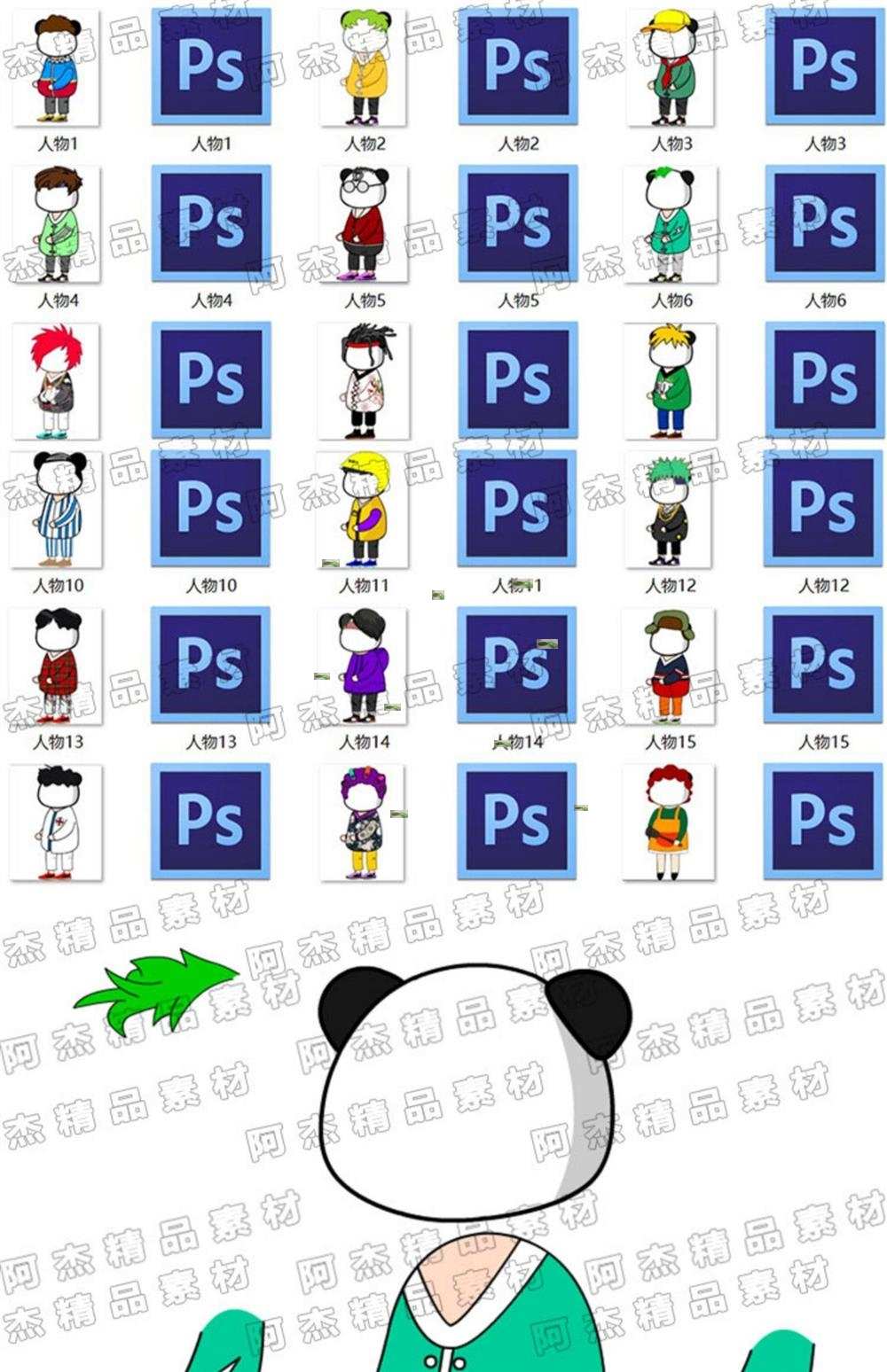 AE沙雕动画人物设计AN原创角色制作fla素材蘑菇头熊猫人psd源文件