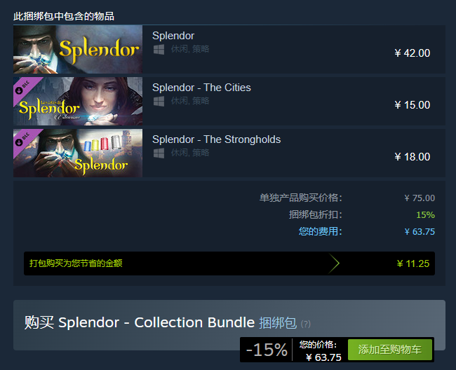 豪华版:Splendor - Collection Bundle,包括游戏本体 DLC拓展1 DLC拓展2 | |