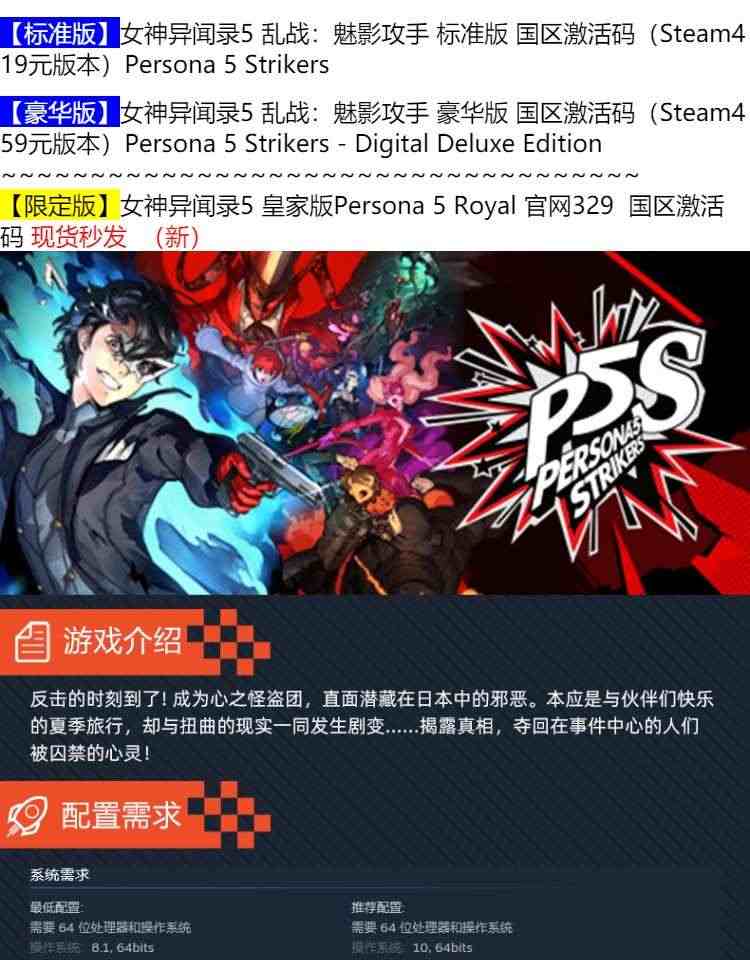 steam 女神异闻录5皇家版 国区激活码CDKey P5R 女神异闻...