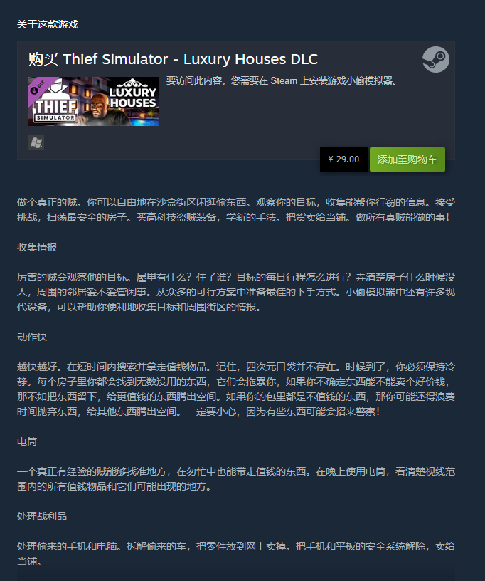 小偷模拟器steam全球区激活码激活入库 全DLC Thief Simulator