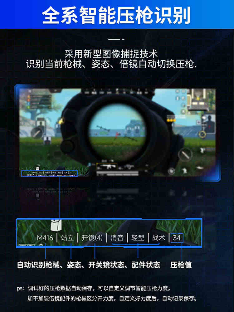 • 华为可以使用,操作简单,自动压枪功能炒鸡稳定,根本就跟GUA一样,手感也很好,防滑不会脱手,用摇杆操作走位更流畅,拿下P城一气呵成!