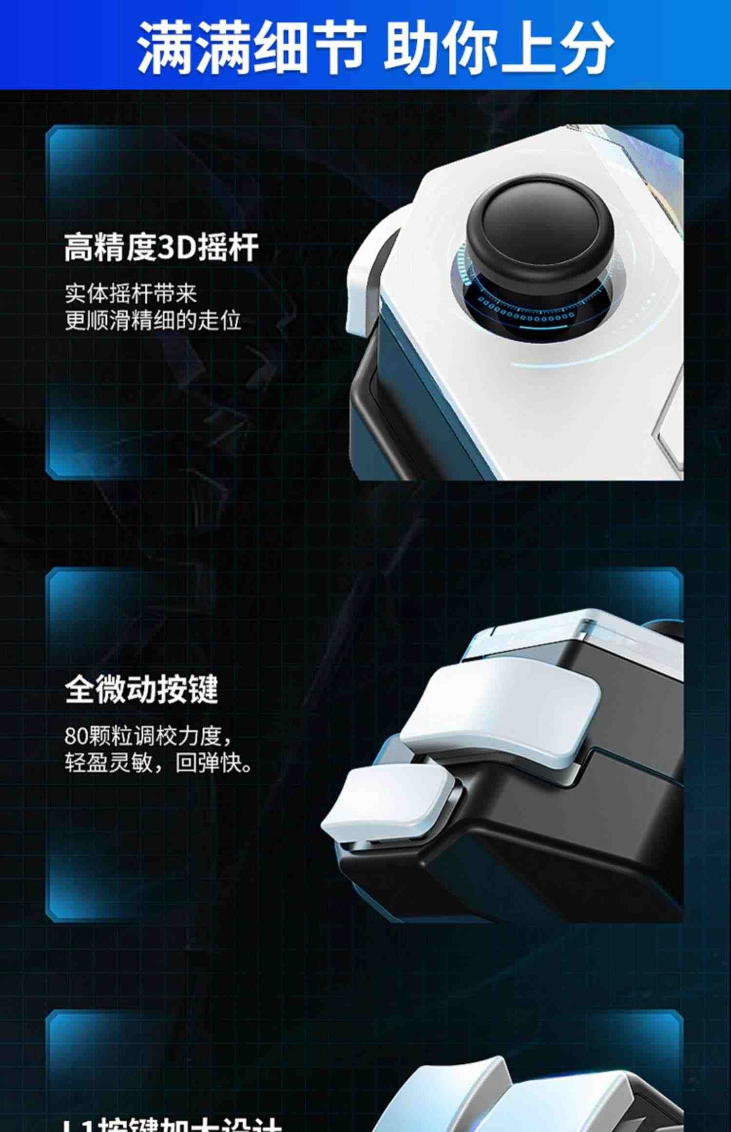 • 1天后追评打王者特别不错,按键跟摇杆触发都很灵敏,用摇杆走位跟德芙一样丝滑,一键换装绝了,每次开团秒换复活甲再换金身再换名刀,打都打不死,敌人都懵了,这也太6了手感不错,灵活不卡顿,很容易就上手