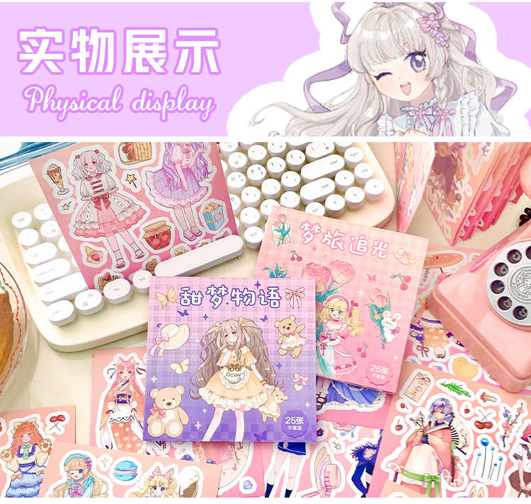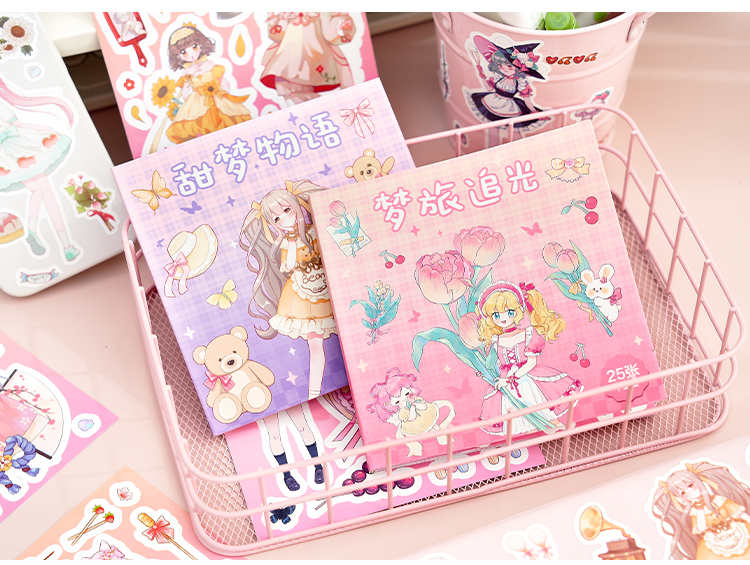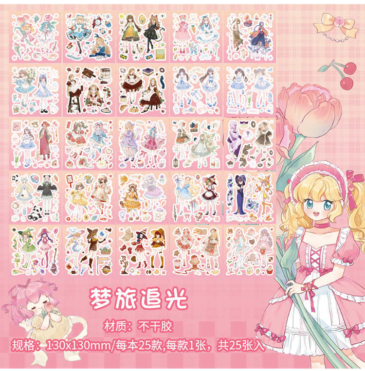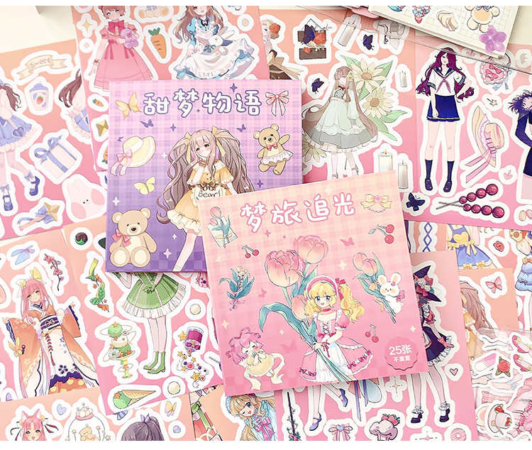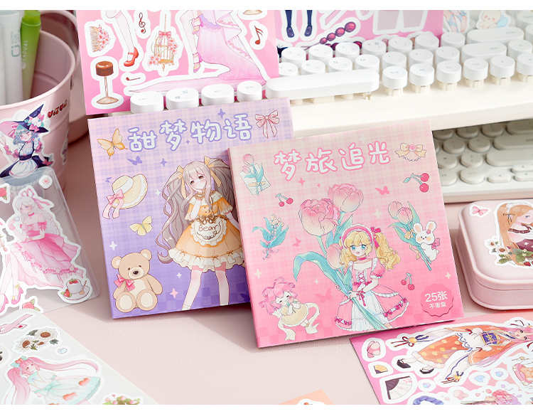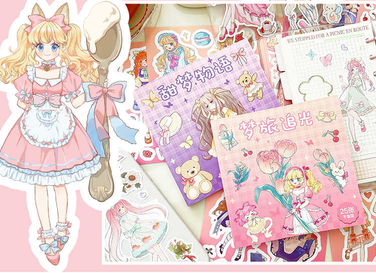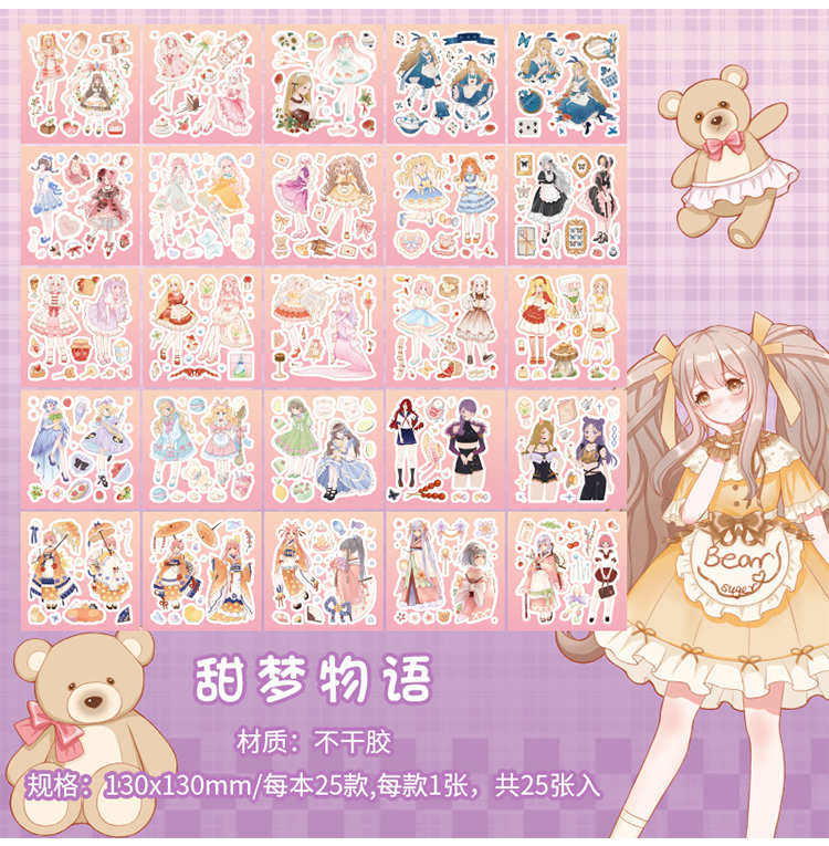 25张甜梦物语甜亚风咕卡贴纸本可爱人物女孩手账拼贴装饰素材贴画