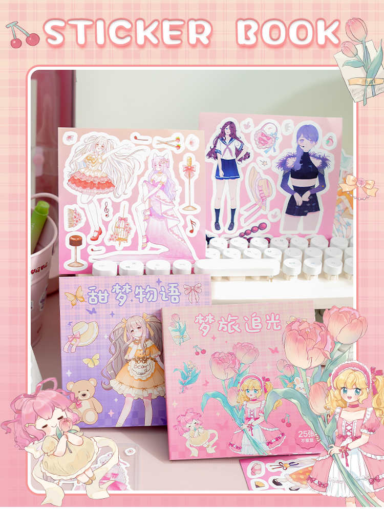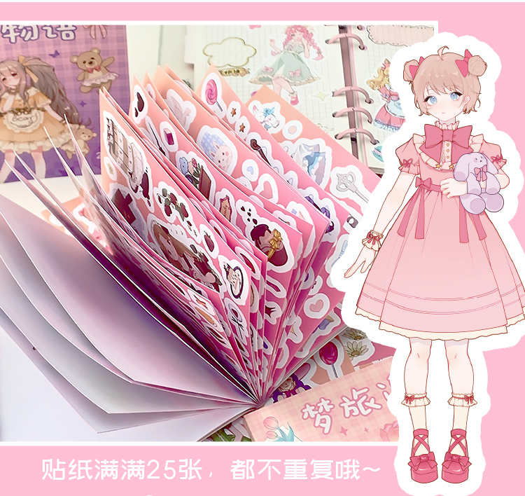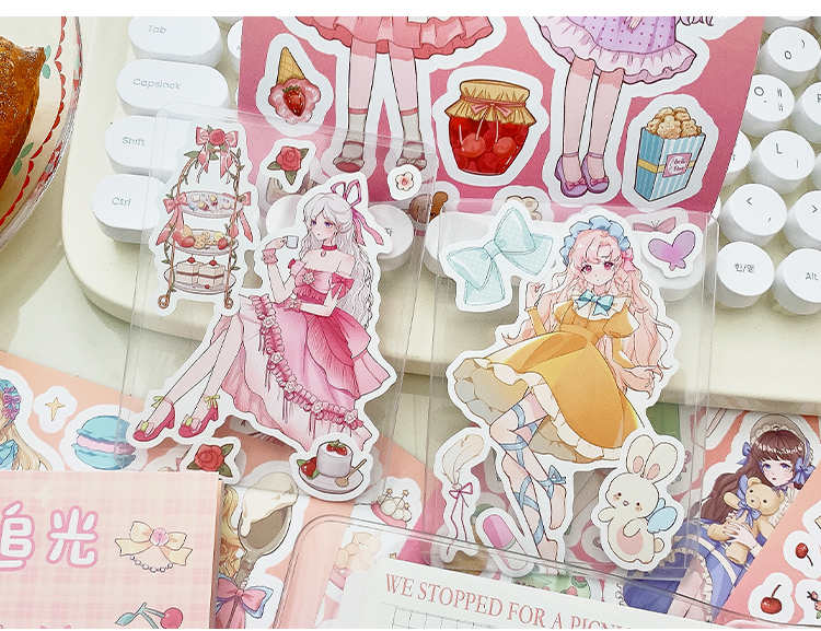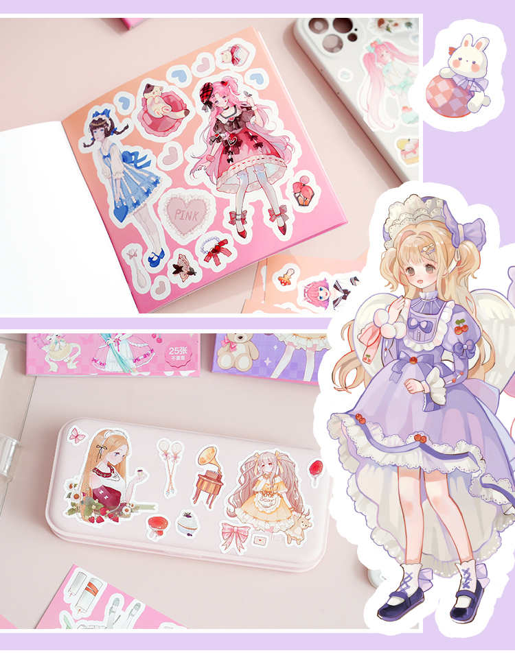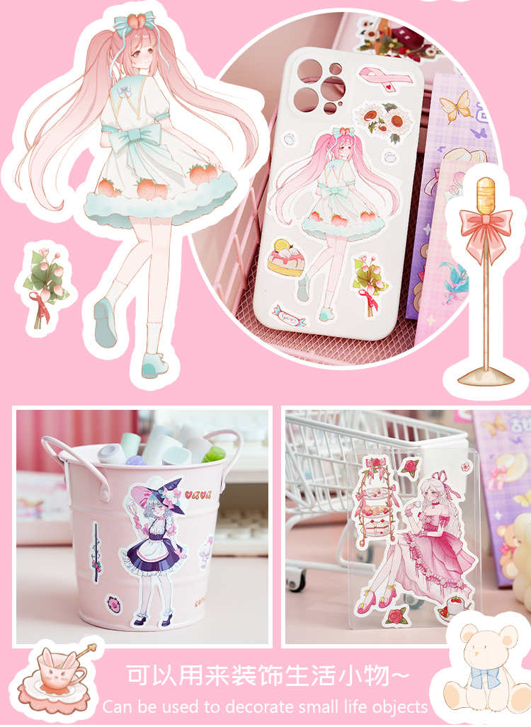 25张甜梦物语甜亚风咕卡贴纸本可爱人物女孩手账拼贴装饰素材贴画