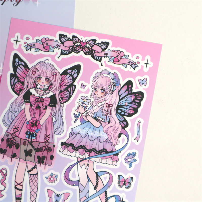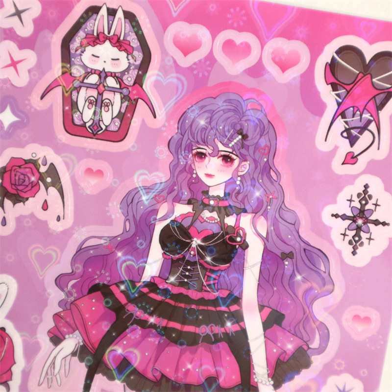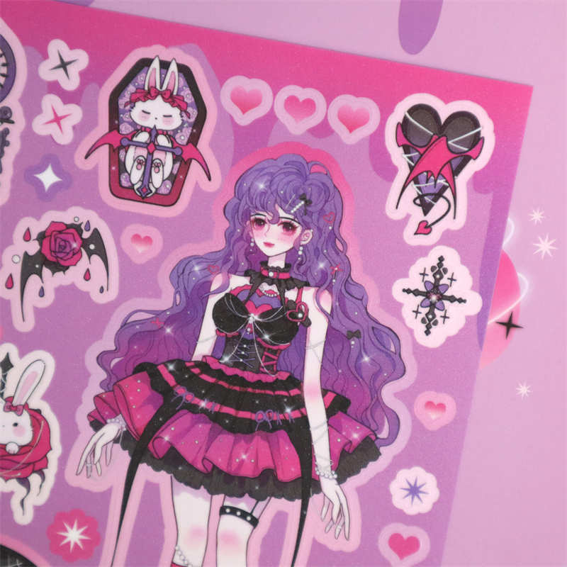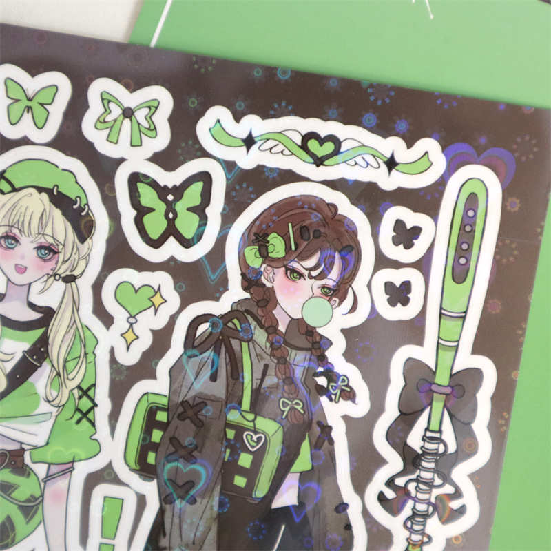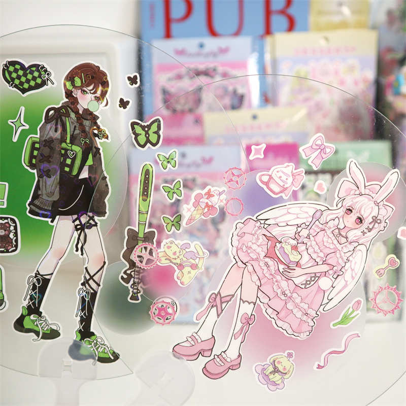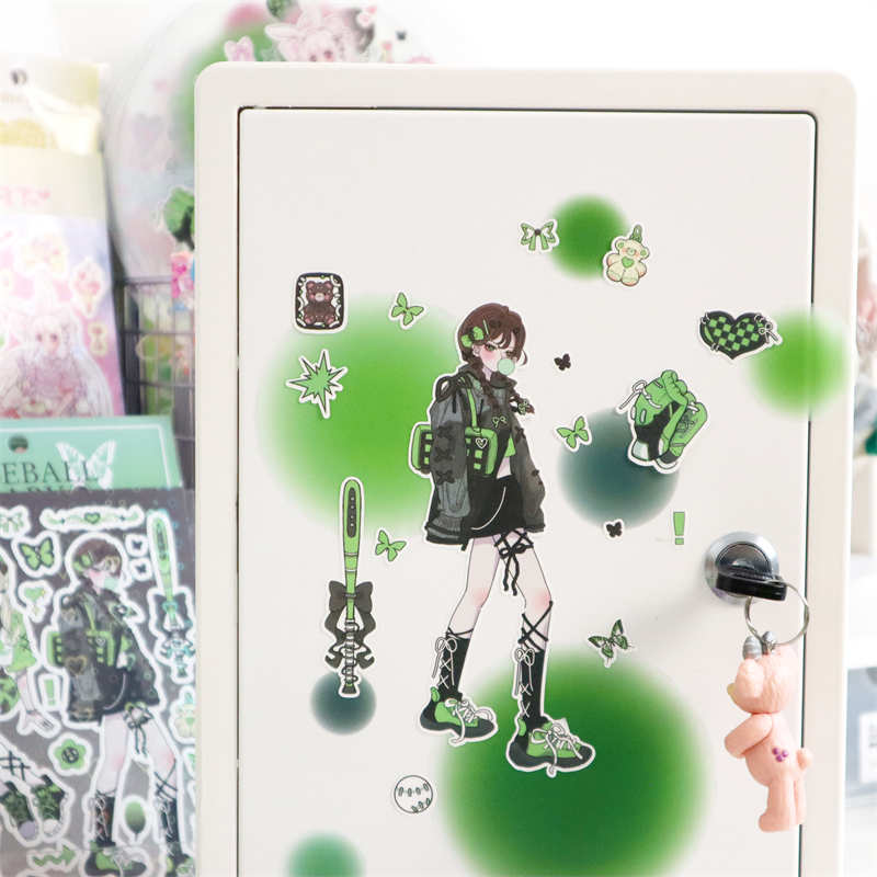 有控 y2k贴纸 可爱甜酷风原创人物少女手帐咕卡造景拼贴打底素材