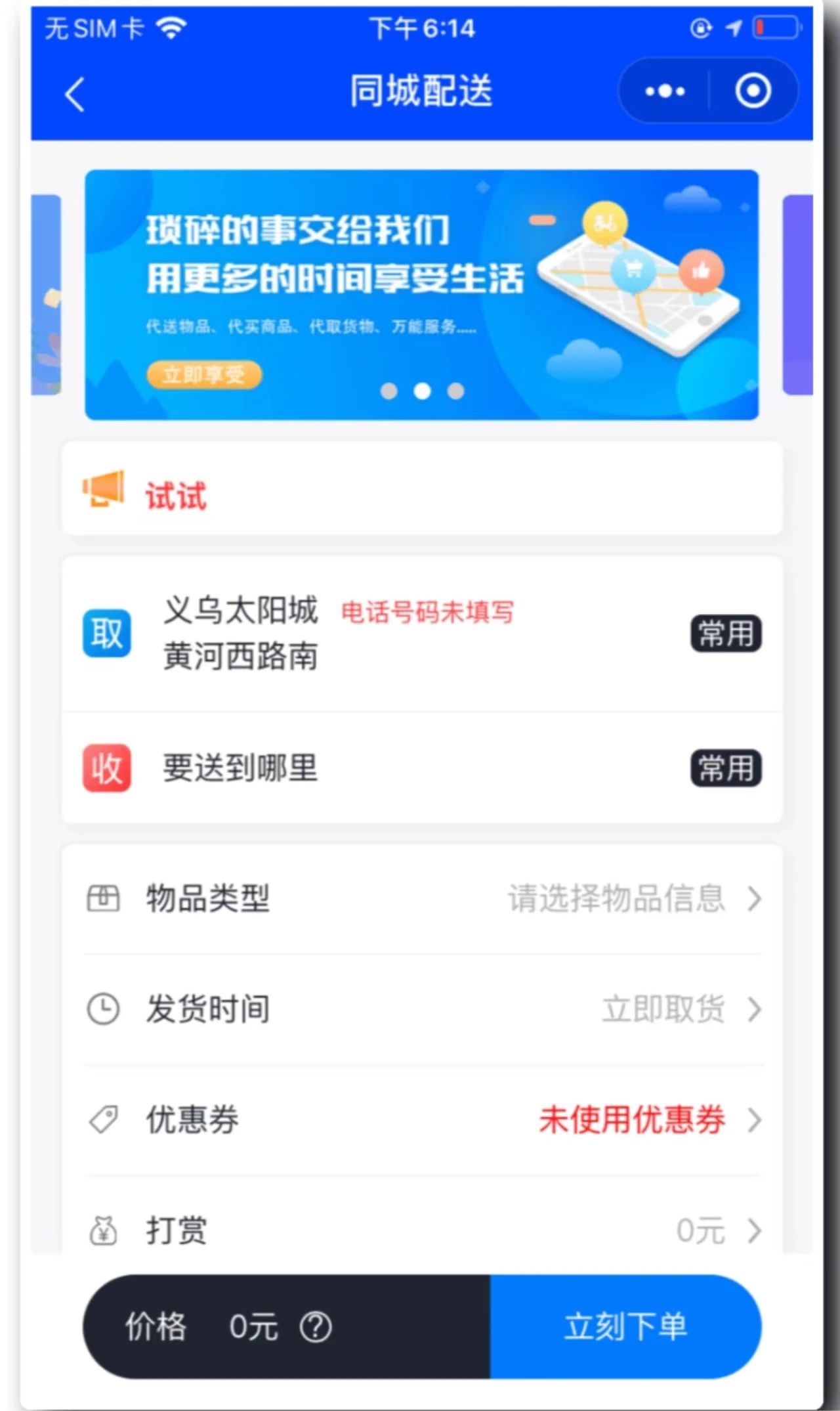 同城跑腿,一款以同城送货取货功能为主,为下单者提供代驾、车险代办、帮送、拉货、帮
