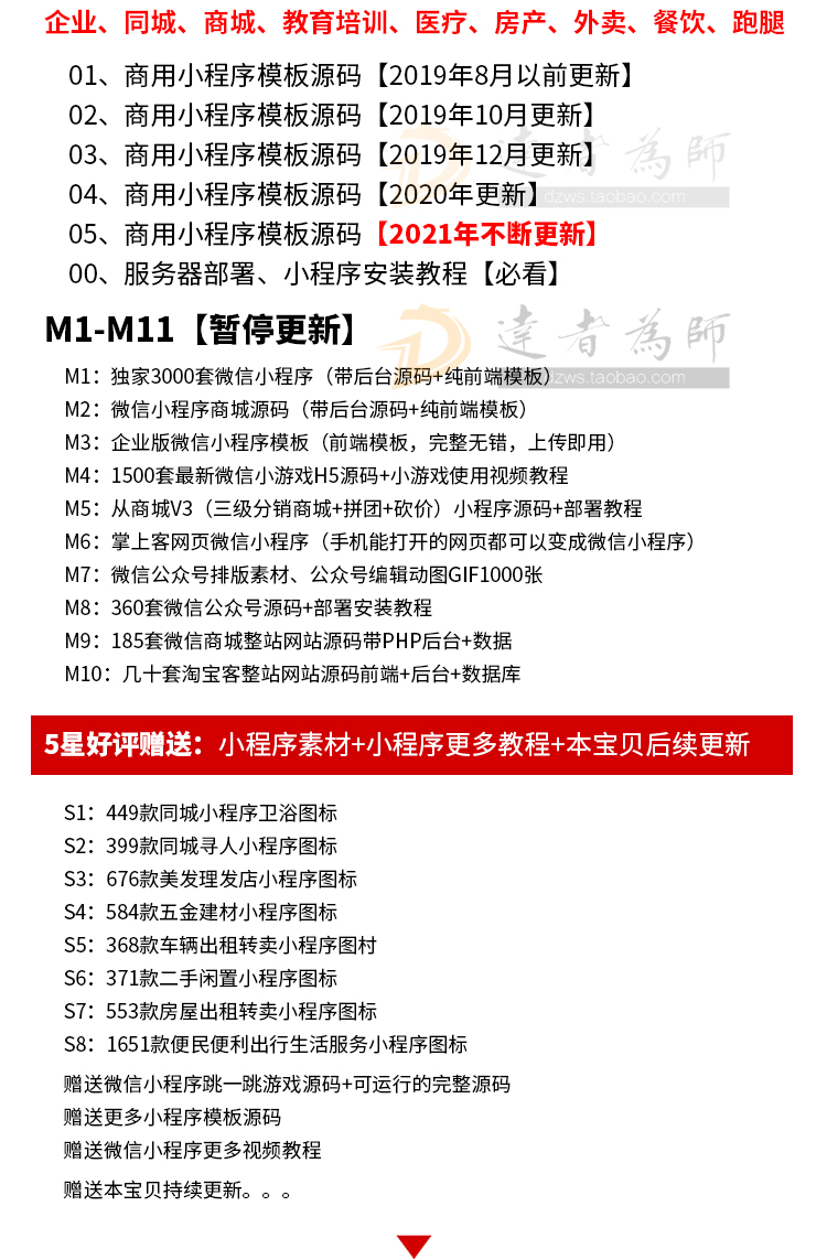 5星好评赠送:小程序素材+小程序更多教程+本宝贝后续更新