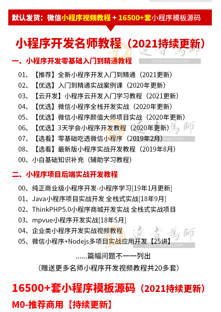 默认发货:微信小程序视频教程+16500+套小程序模板源码小程序开发名师教程(2021持续更新)