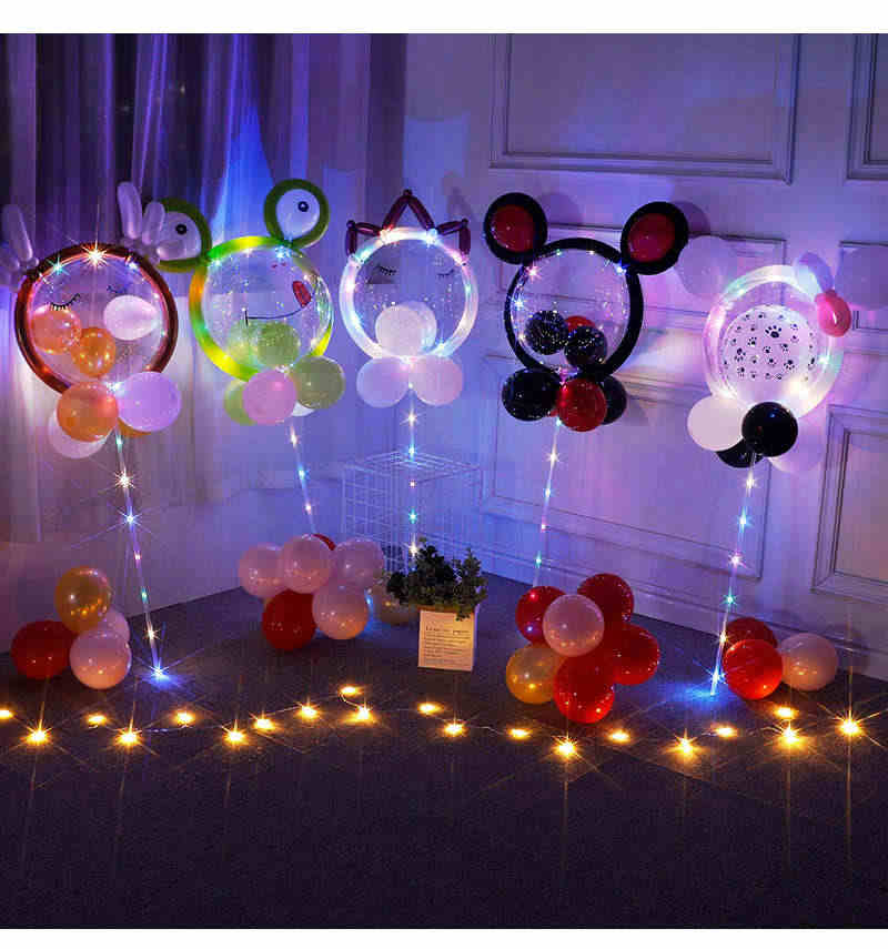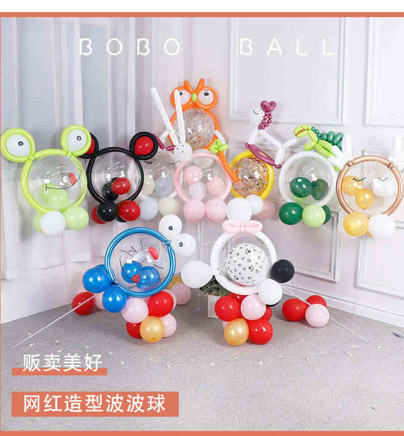 送教程网红波波球 火爆款多款新卡通带灯发光气球造型材料包摆摊
