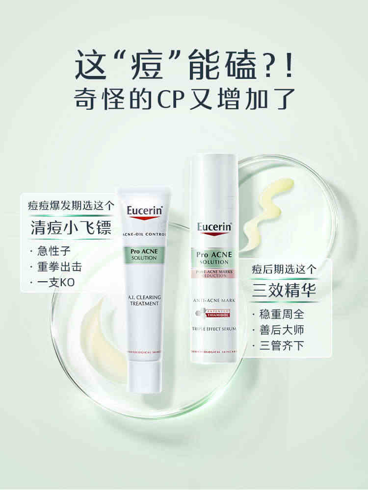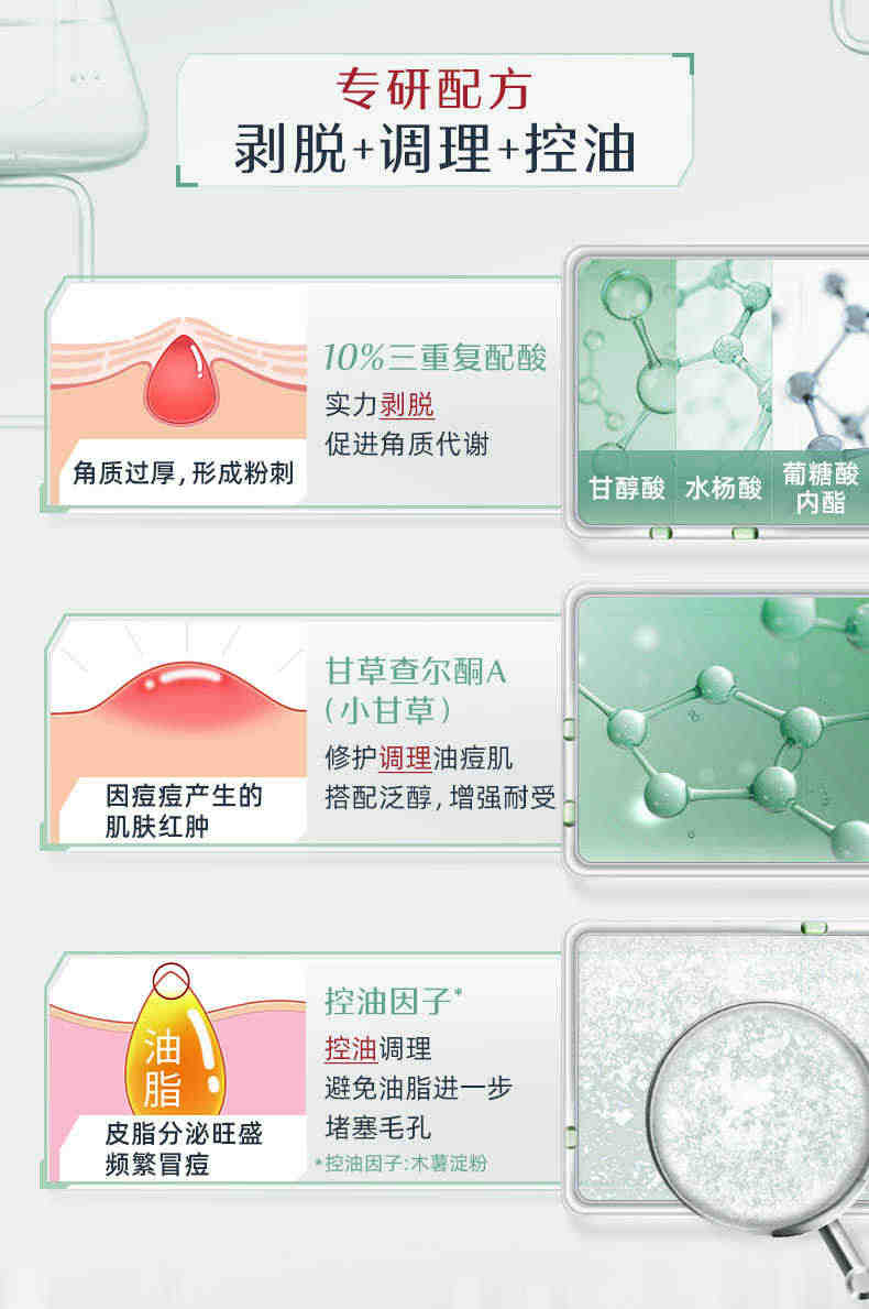 • 三效精华真好使啊,痘痘瘪下去了!把专利美白成分Tiamidol放到祛痘线,配合水杨酸和甘草查尔酮A,覆盖淡化痘印、预防新生痘、调节皮脂分泌三诉求。