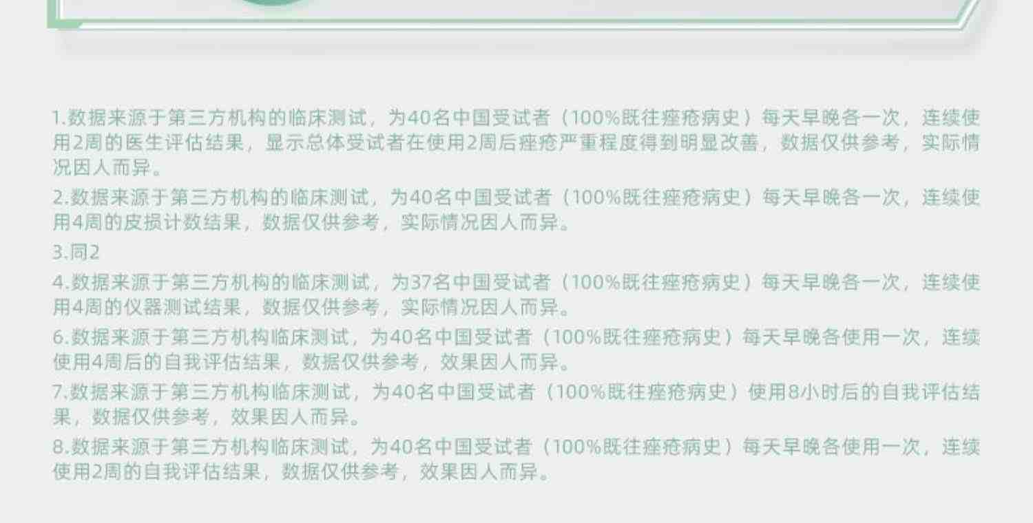 • 18天后追评从9月25日使用至今,期间还伴随了又一波姨妈痘,小飞镖已经扫光困扰我已久的下巴痘,马上就可以镁光弹用起秒痘印了,绝绝子!