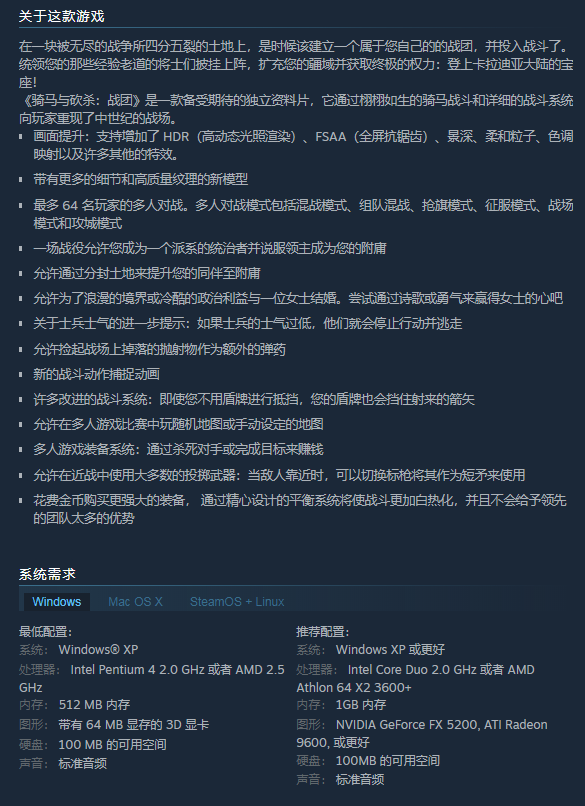 【骑砍中文站】骑马与砍杀 战团 正版 Steam CDKEY/16位序列号/激活码 23MOD典藏版