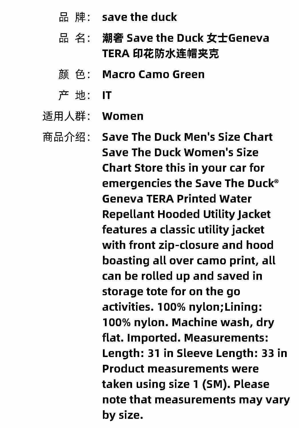 香港直邮潮奢 Save the Duck 女士Geneva TERA 印花防水连帽夹克 香港直邮潮奢 Save the Duck 女士Geneva TERA 印花防水连帽夹克 香港直邮潮奢 Save the Duck 女士Geneva TERA 印花防水连帽夹克