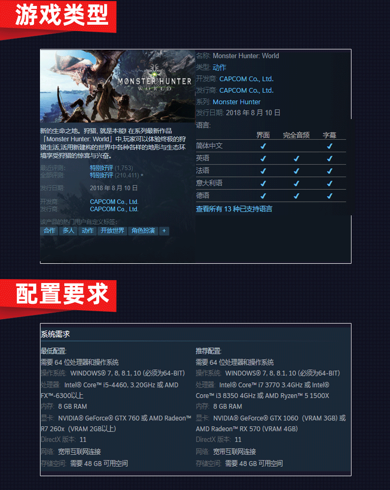 【标准版】=怪物猎人世界 游戏本体 国区CDK激活码(官网原价203)