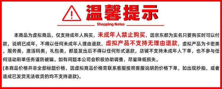 3、点卡软件商品,默认按商品详情作为纠纷评判依据(特别声明或有商定除外);