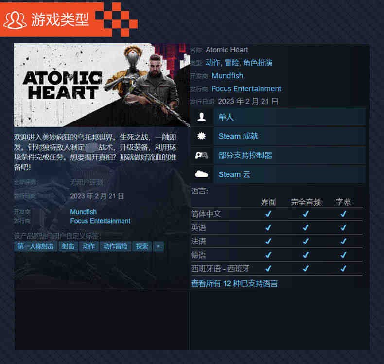 正版 steam 原子之心 Atomic Heart 国区激活码 cd...