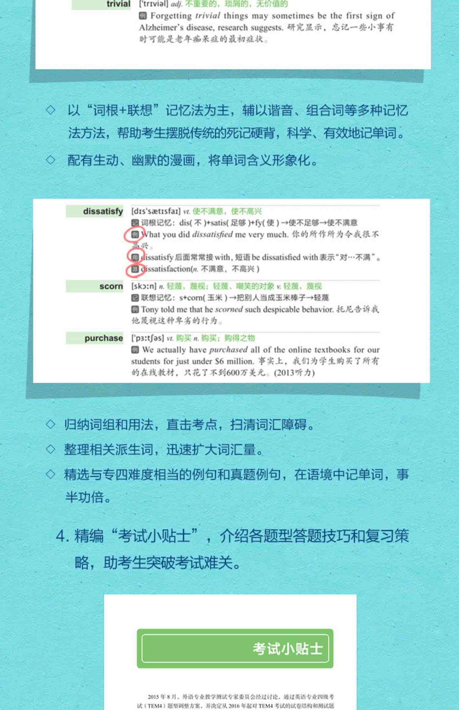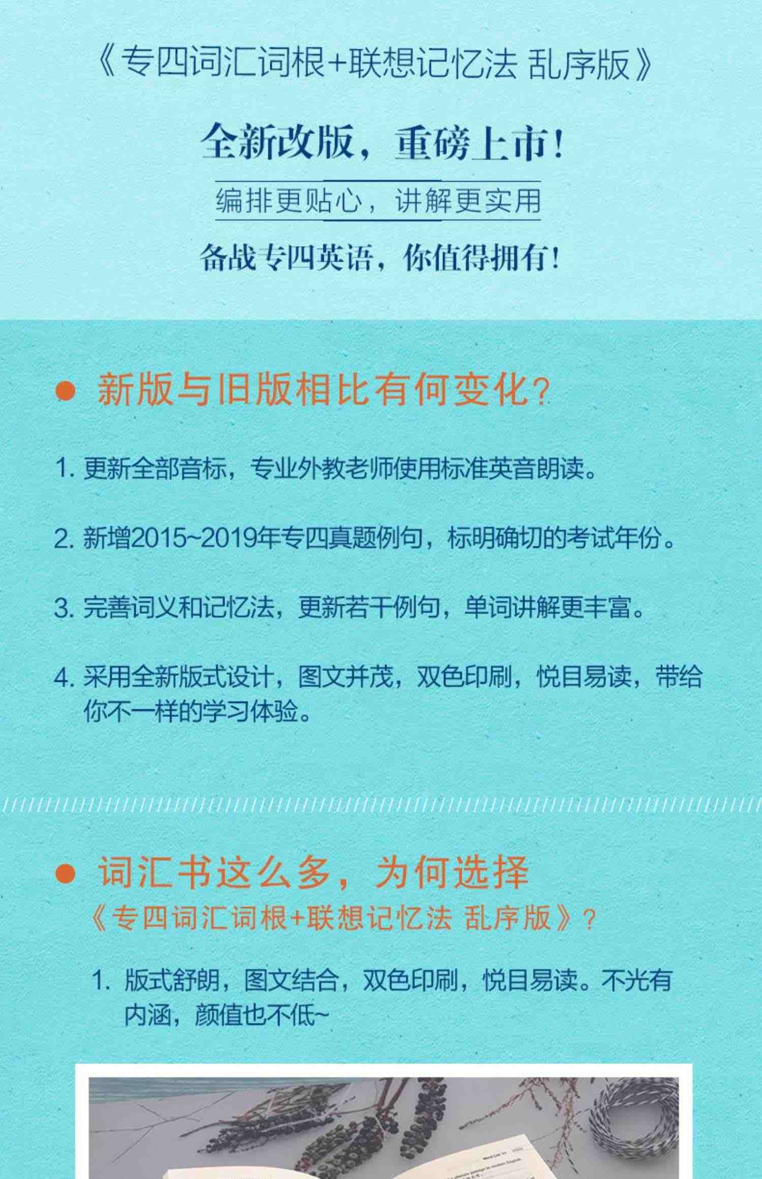 新东方官方旗舰店 专四词汇词根+联想记忆法 乱序版 新东方绿宝书 俞敏洪TEM4 语法词汇书 英语专业四级核心大纲高频单词汇书籍