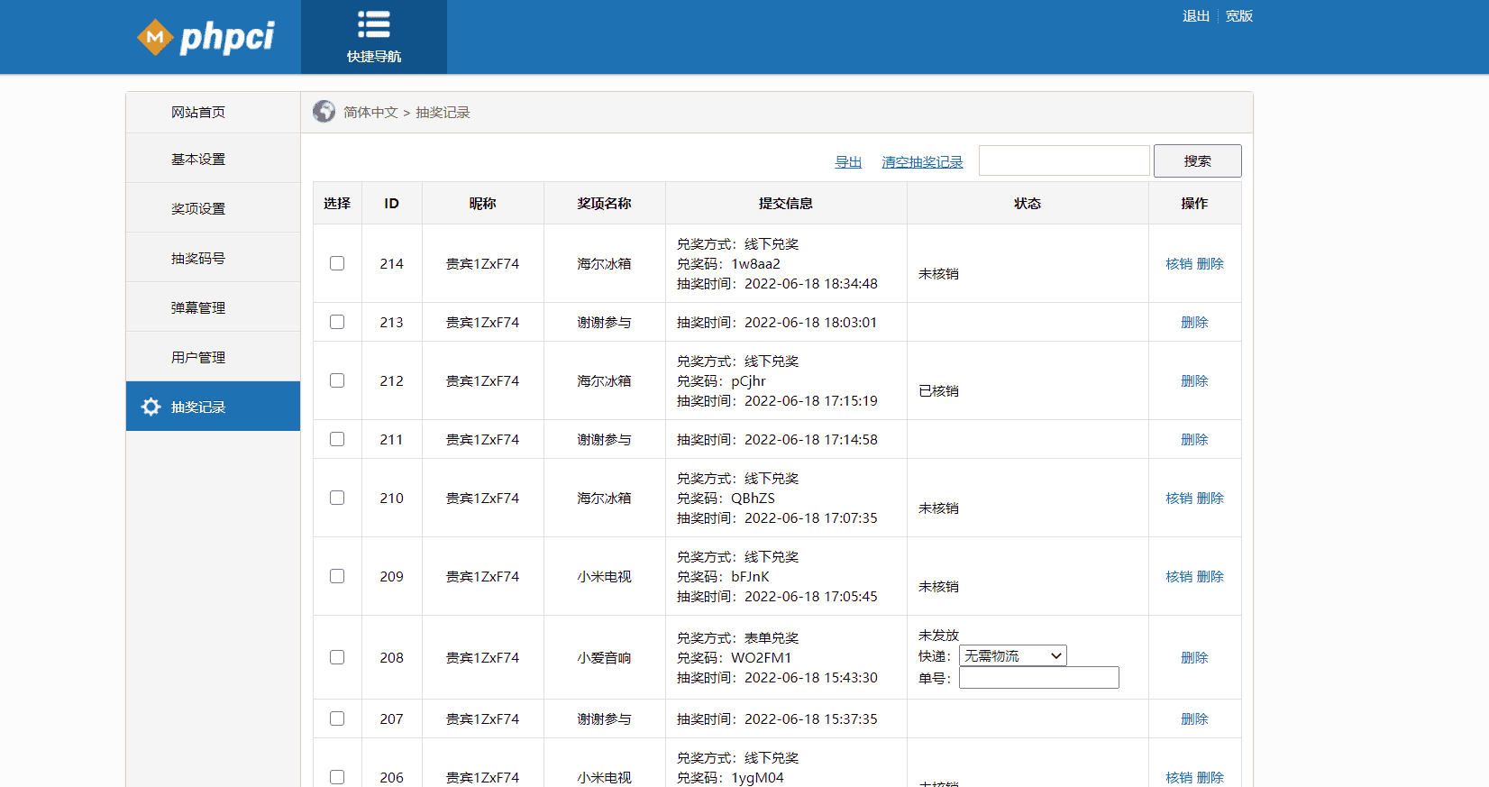 #抽奖码抽奖(支持导入)