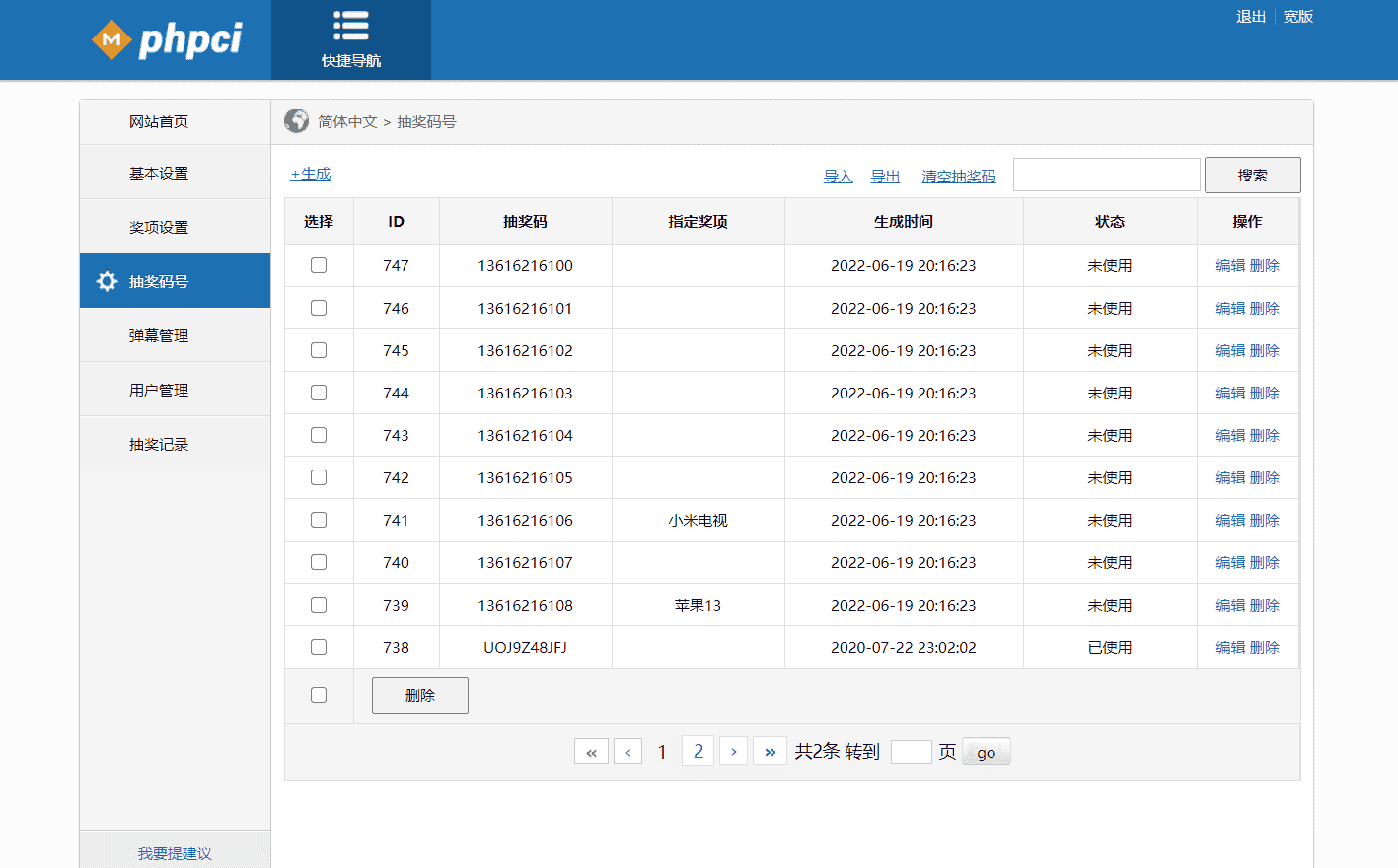 #可批量指定中奖奖品