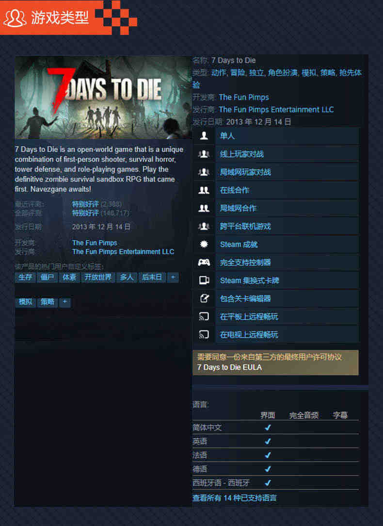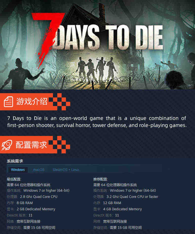 【标准版】七日杀 7 Days to Die 标准版游戏本体 国区/全球激活码 CDK秒发
