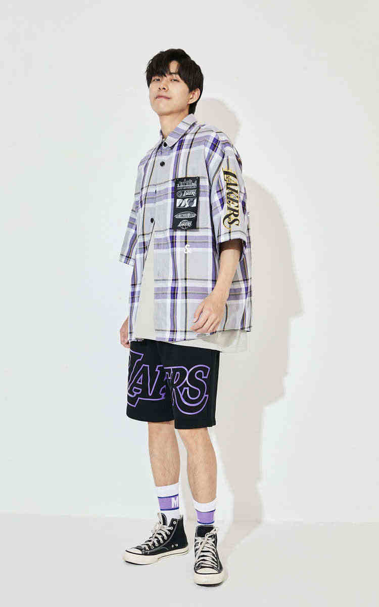 商品信息 | 货号:221304024 款名:NBA LAL SLASH SHIRT SS-OVERSIZED-2FR 吊牌价:¥599 颜色:蓝紫色 面料:棉100% (装饰物部分除外) | |