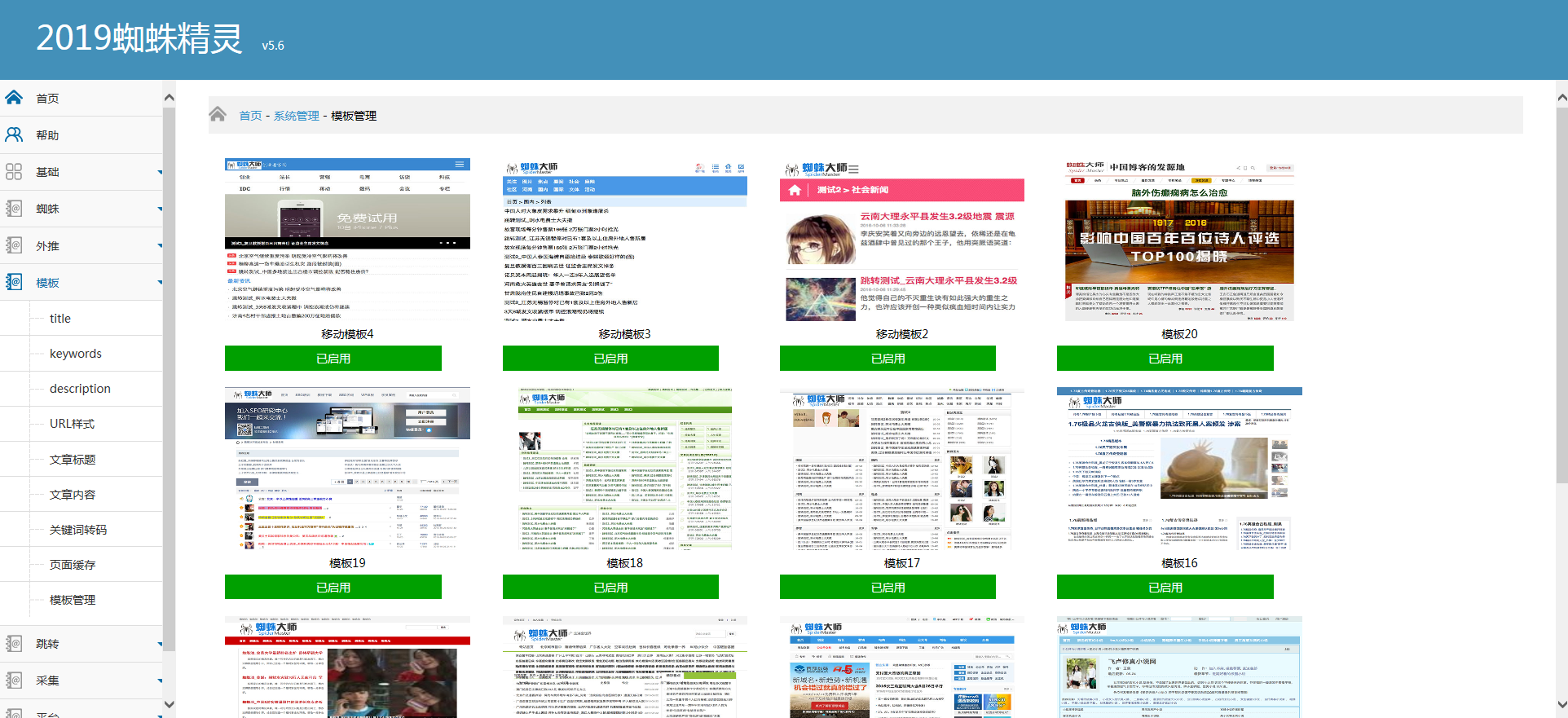 2019蜘蛛精灵V5.6版,蜘蛛池/站群程序,免受权,开源版,自动采集...