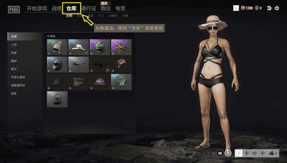 步骤一:购买下单后,获取绝地求生皮肤cdk。进入游戏,选择商品-物品。