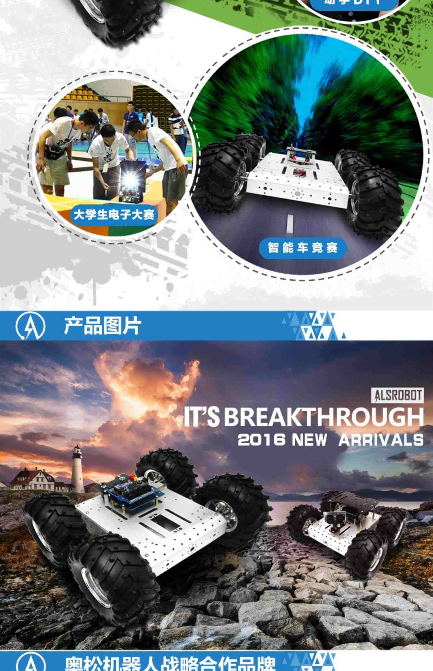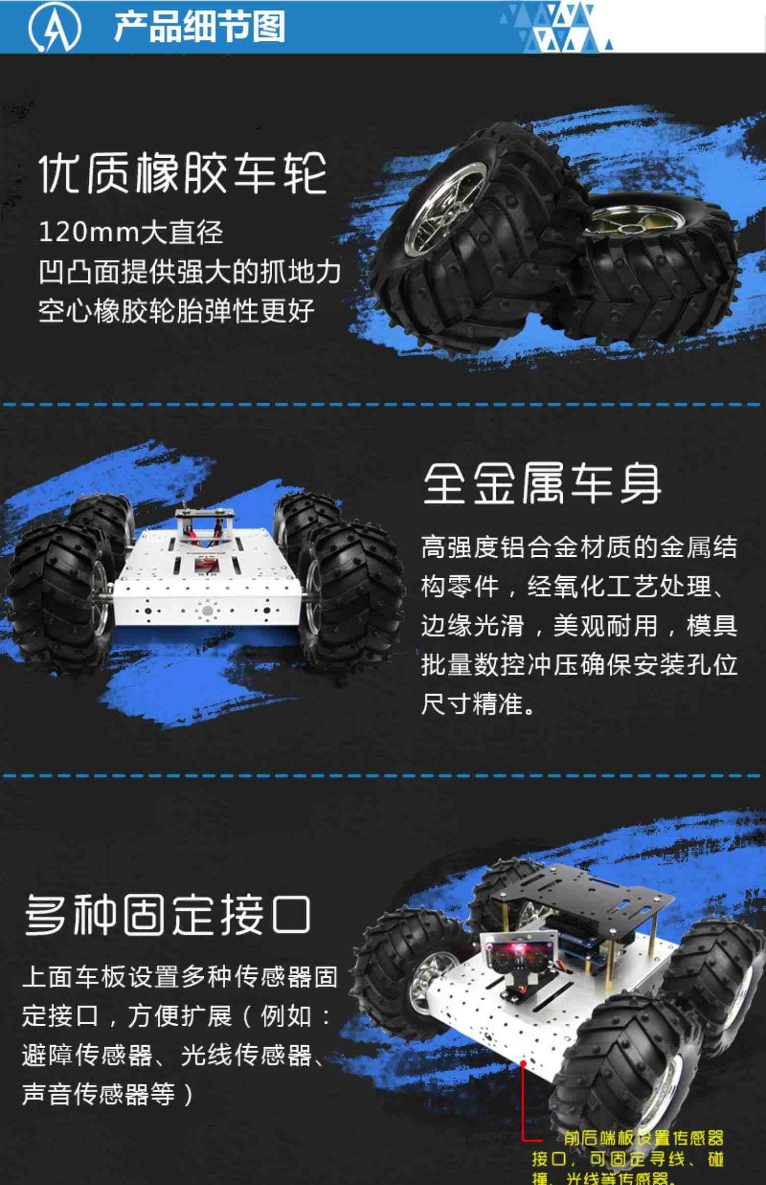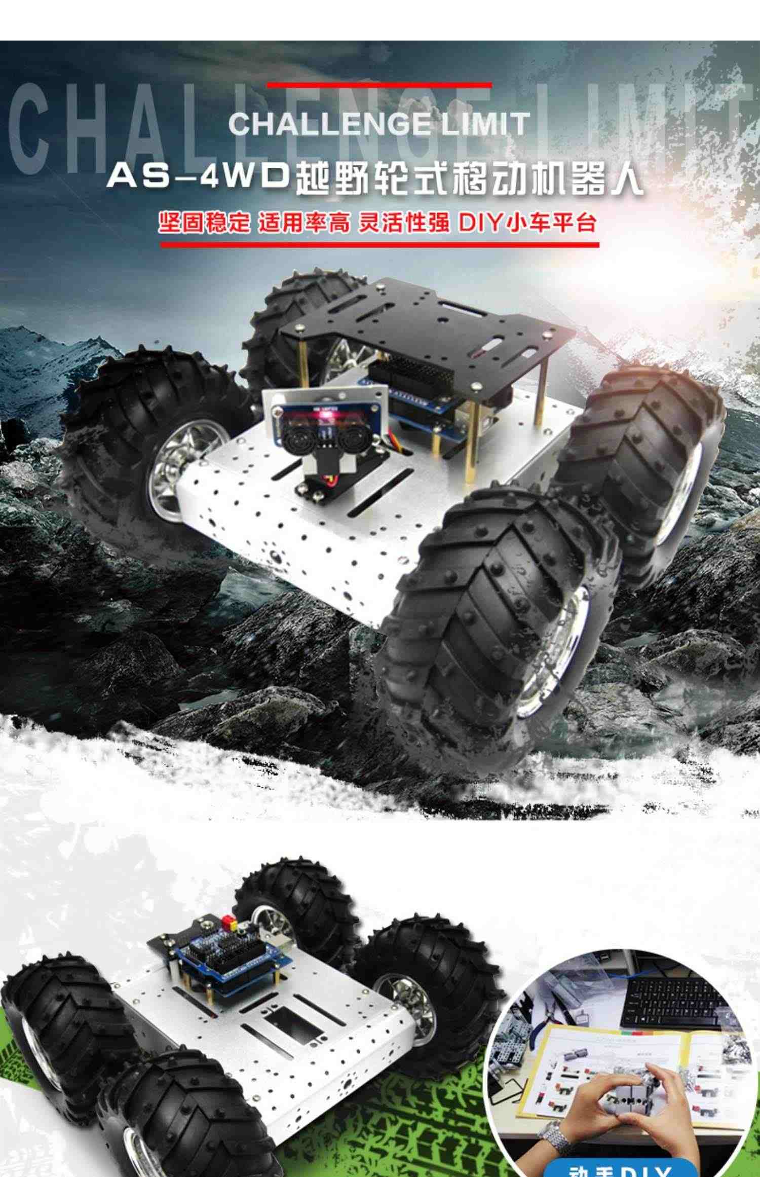 奥松机器人 4WD铝合金移动小车 ROS开发平台 编程玩具 支持Arduino 树莓派 microbit控制器 机器人竞赛专用