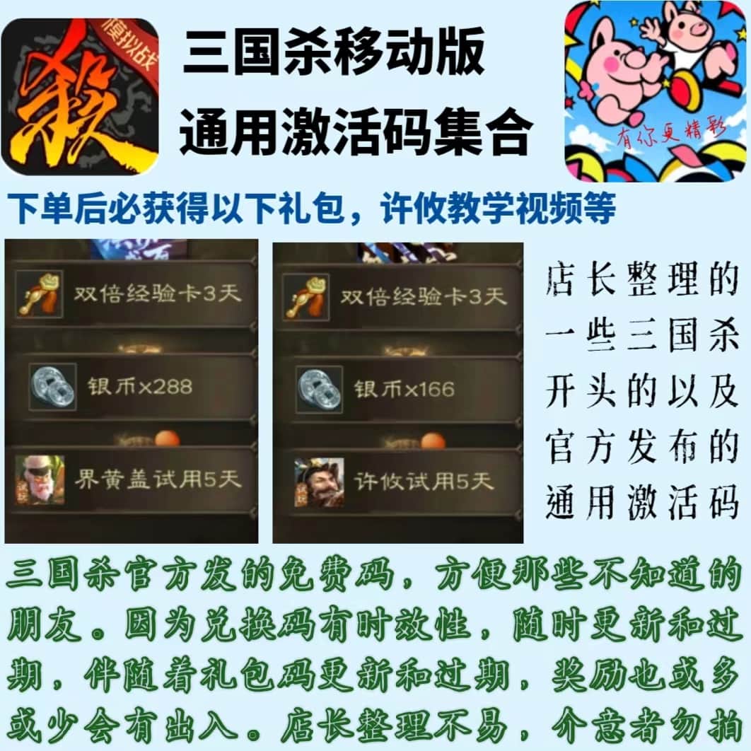 三国杀移动版通用码汇总 许攸界黄盖武将试用银币等文字激活码cdk