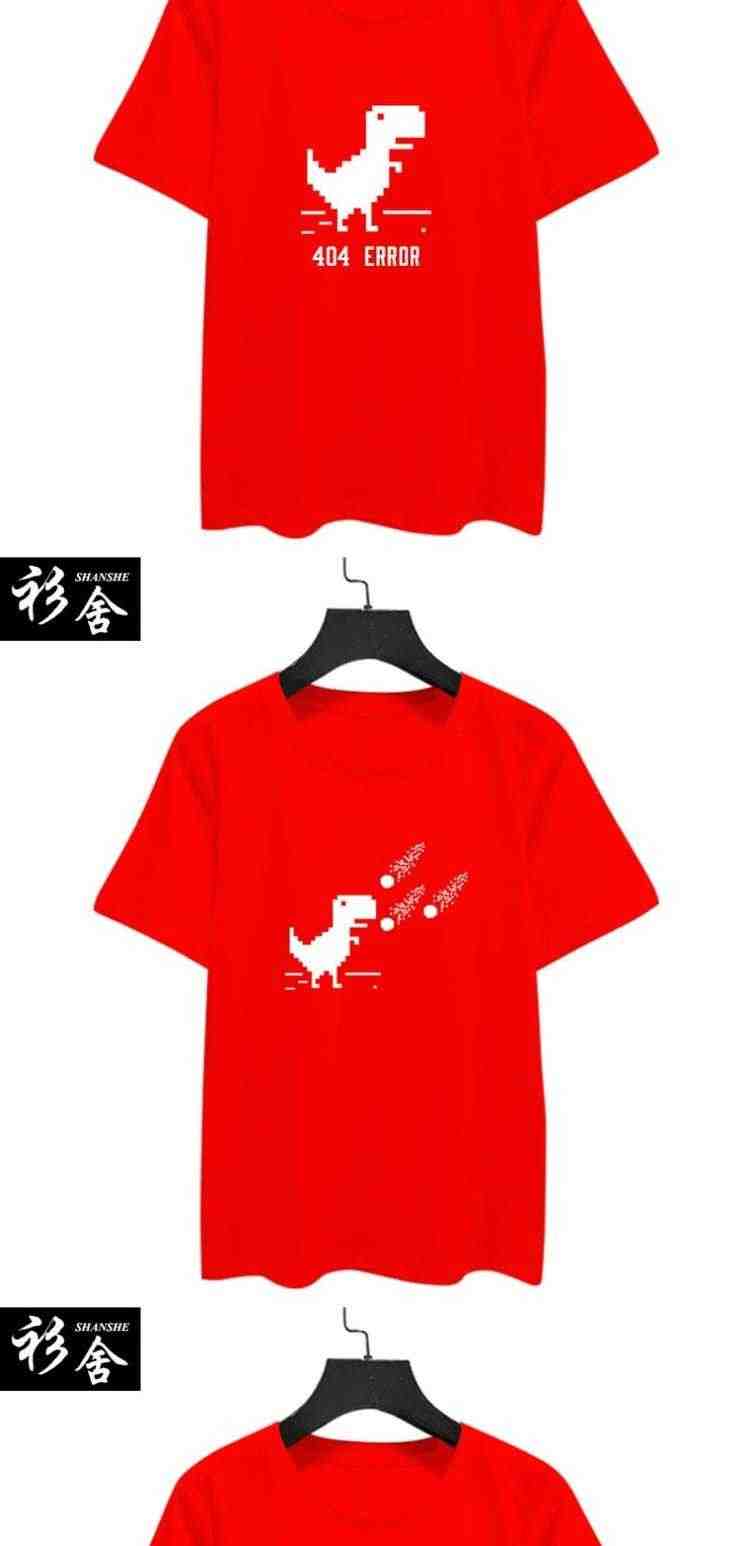 GOOGLE404恐龙极客编程chrome理工男短袖T恤衫半袖宽松休闲上衣服