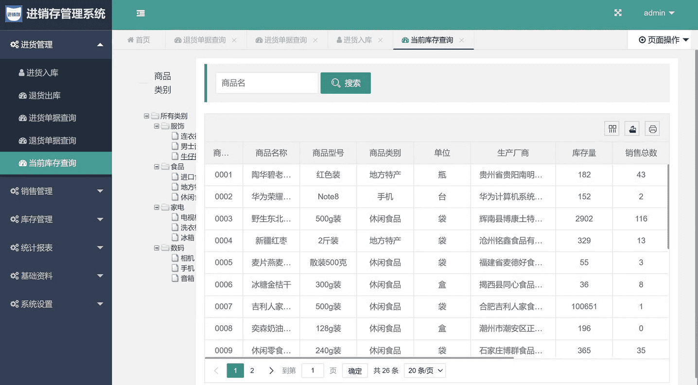 商品类别 商品名 商品条形码 商品类型号 商品类别 单位 生产厂商 库存数量 销售总数