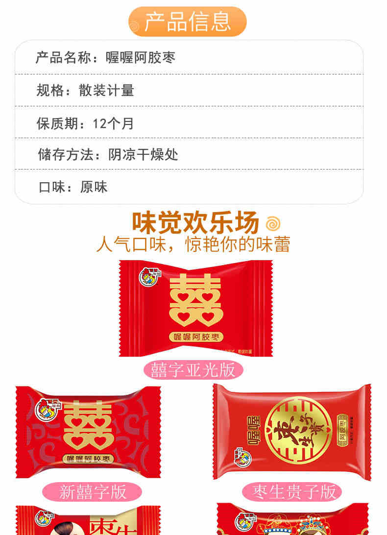 wowo喔喔佳佳阿胶蜜枣喜糖去核结婚庆订婚早生贵子糖果大红枣蜜饯