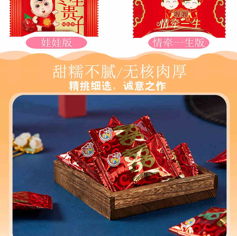 • 买来结婚用的 每一款都认真试吃了 这个枣味道真不错 物流也很快 还送了赠品 非常棒