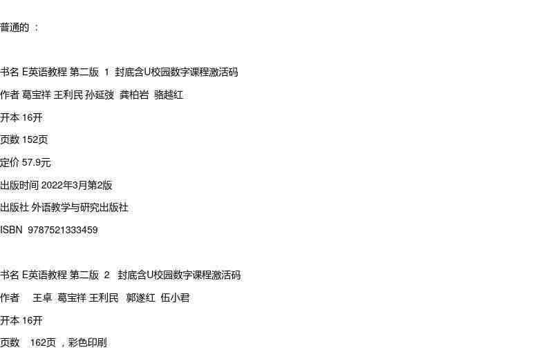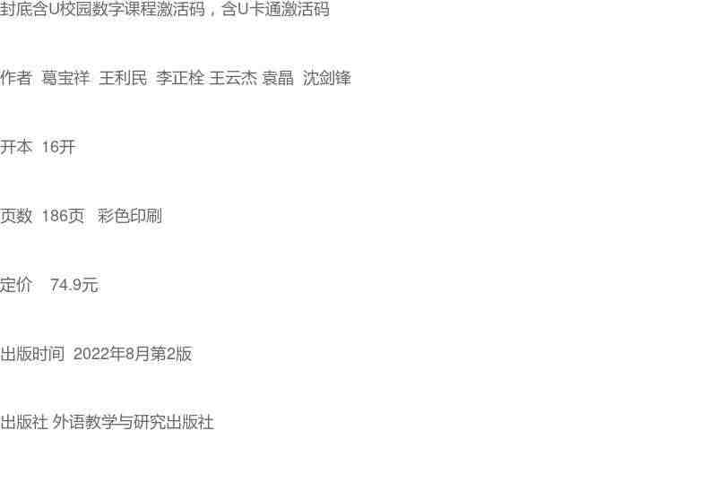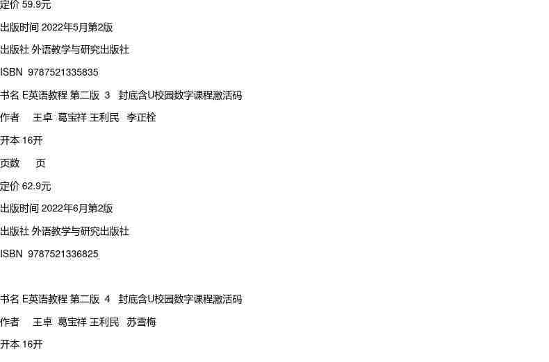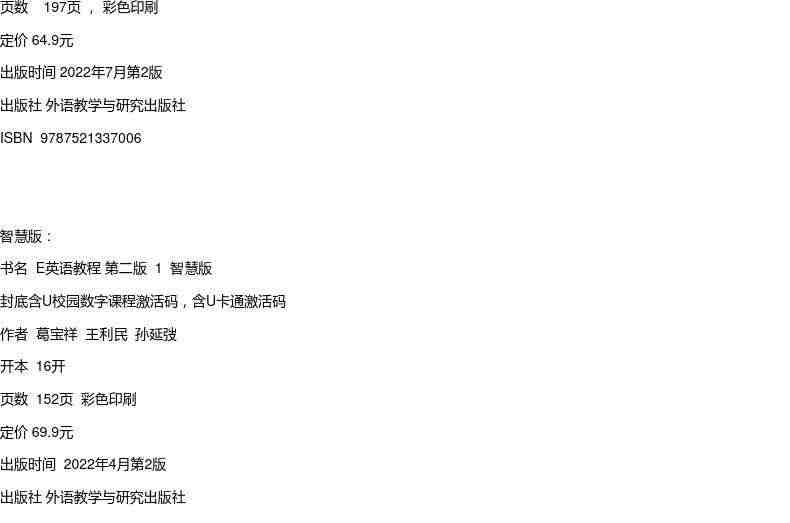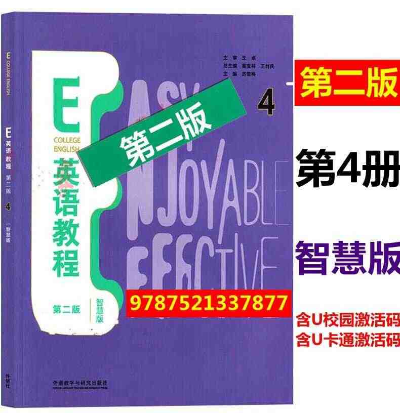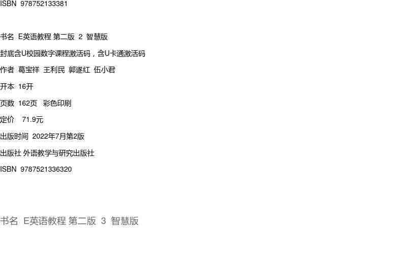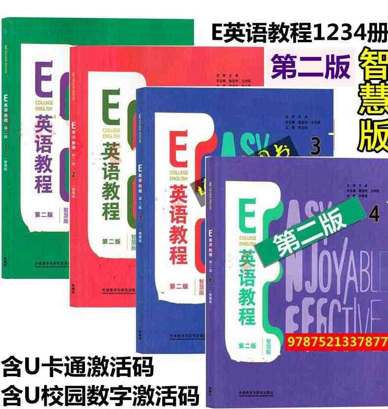 E英语教程第二版1 2 3 4 封底含U校园数字课程激活码:全面提升英语听说读写技能,随时随地学习,方便实用。