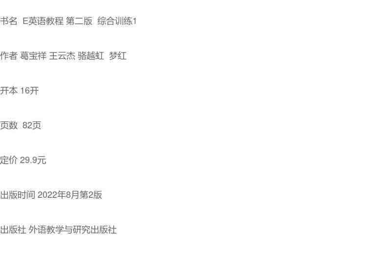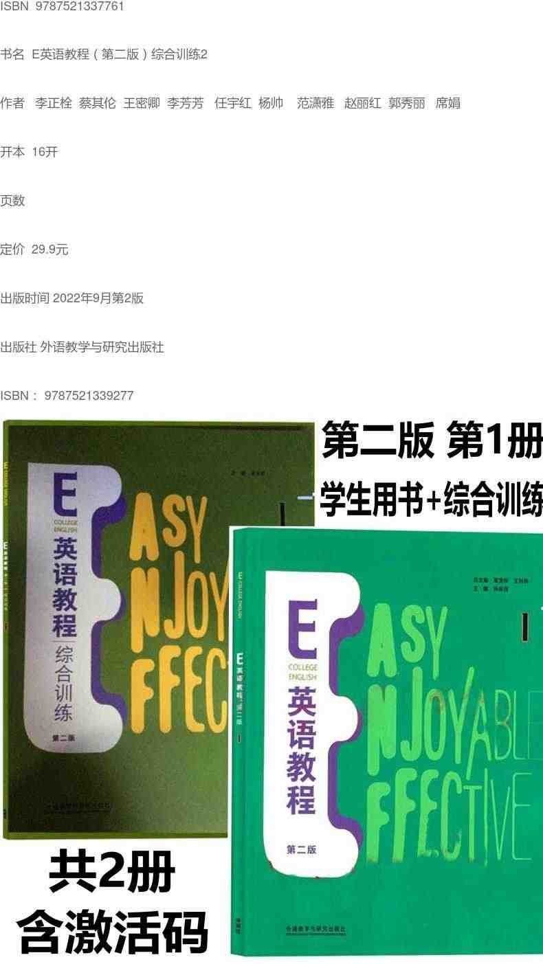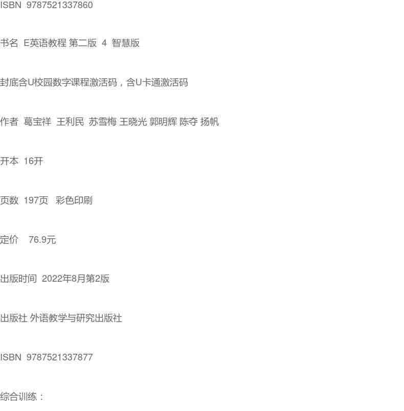 E英语教程第二版智慧版综合训练 封底含U校园数字码含U卡通激活码:灵活配合教材使用,帮助巩固知识点,提高学习效率。