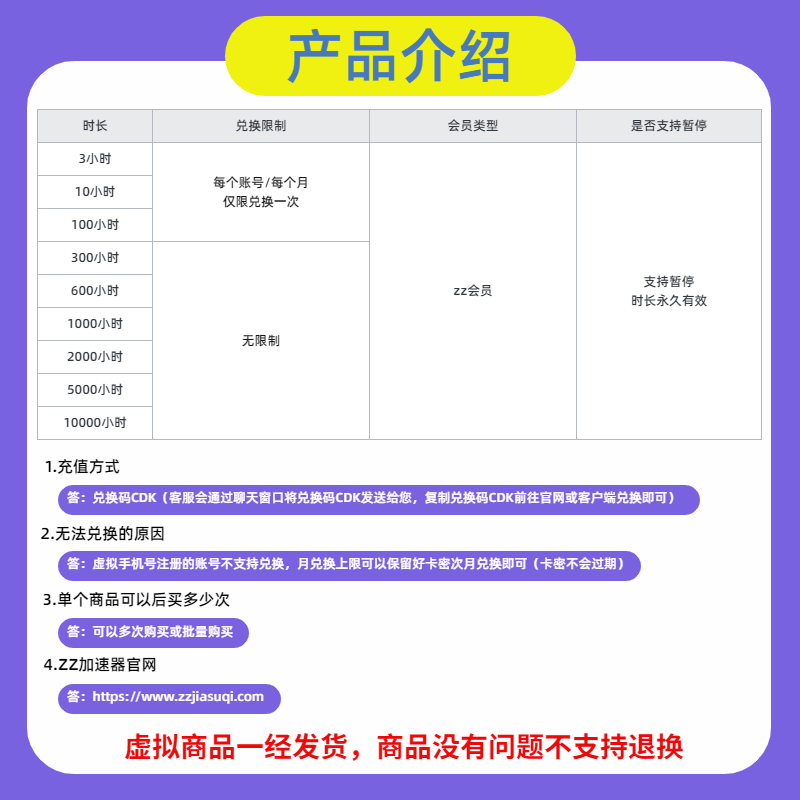 zz加速器100小时 卡密CDK兑换码 可暂停 zz网络游戏加速吃鸡神器
